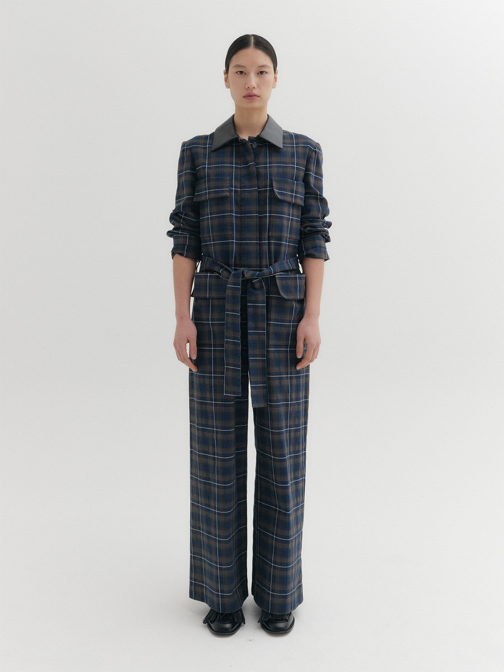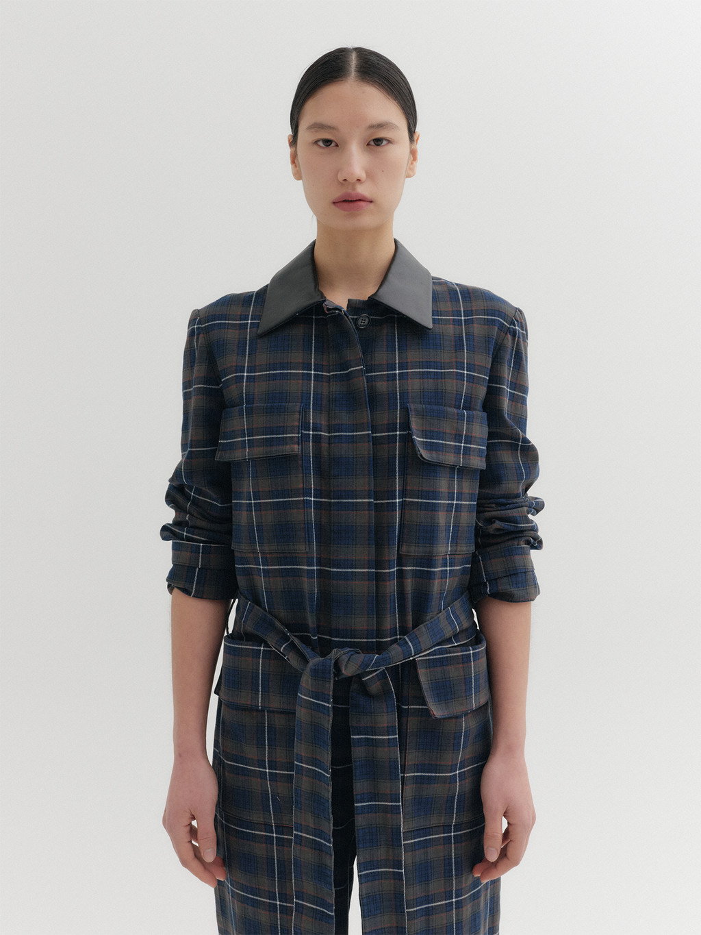 * The product worn by the model is a sample made in size S for the photoshoot. However, there may be differences in total length and specific measurements compared to the actual product. Please refer to the detailed measurements provided on the product page for accurate sizing.
