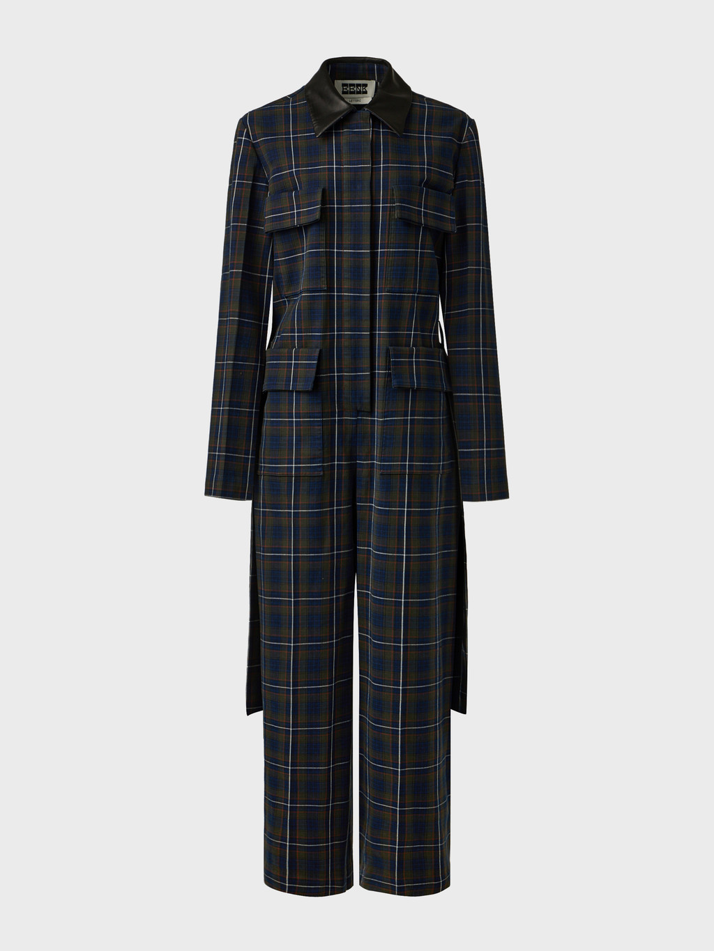 - Leather-contrast collar detail