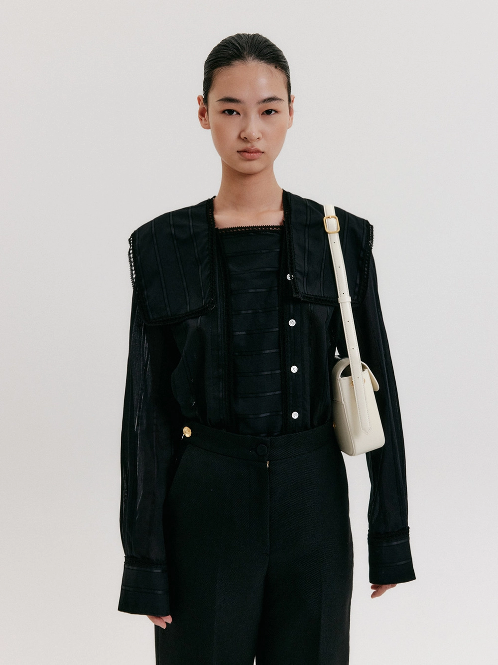 Big Collar Lace Blouse - Black