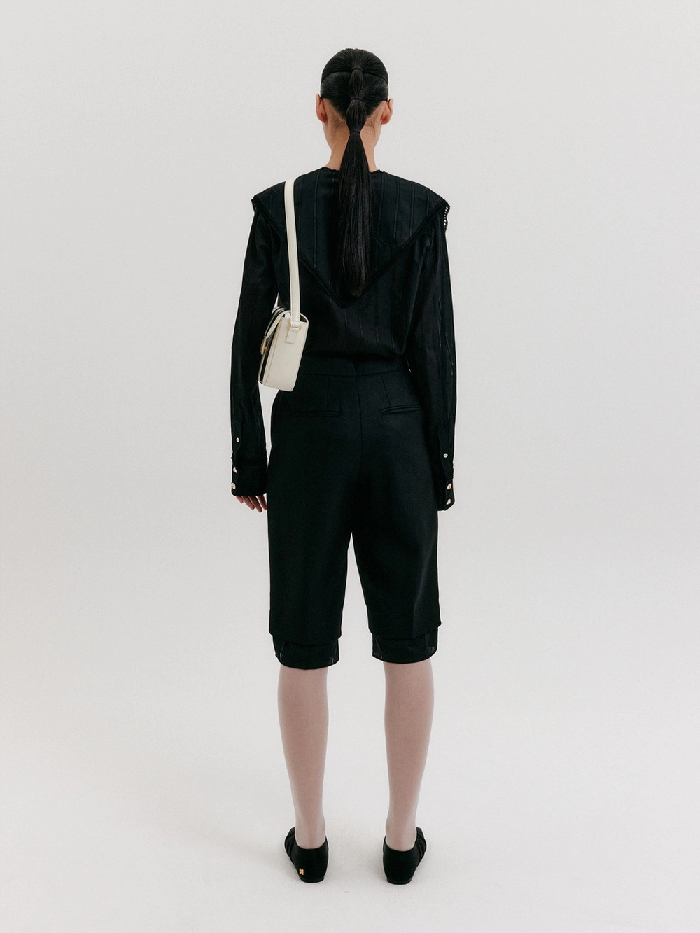 - Shawl collar blouse in cotton