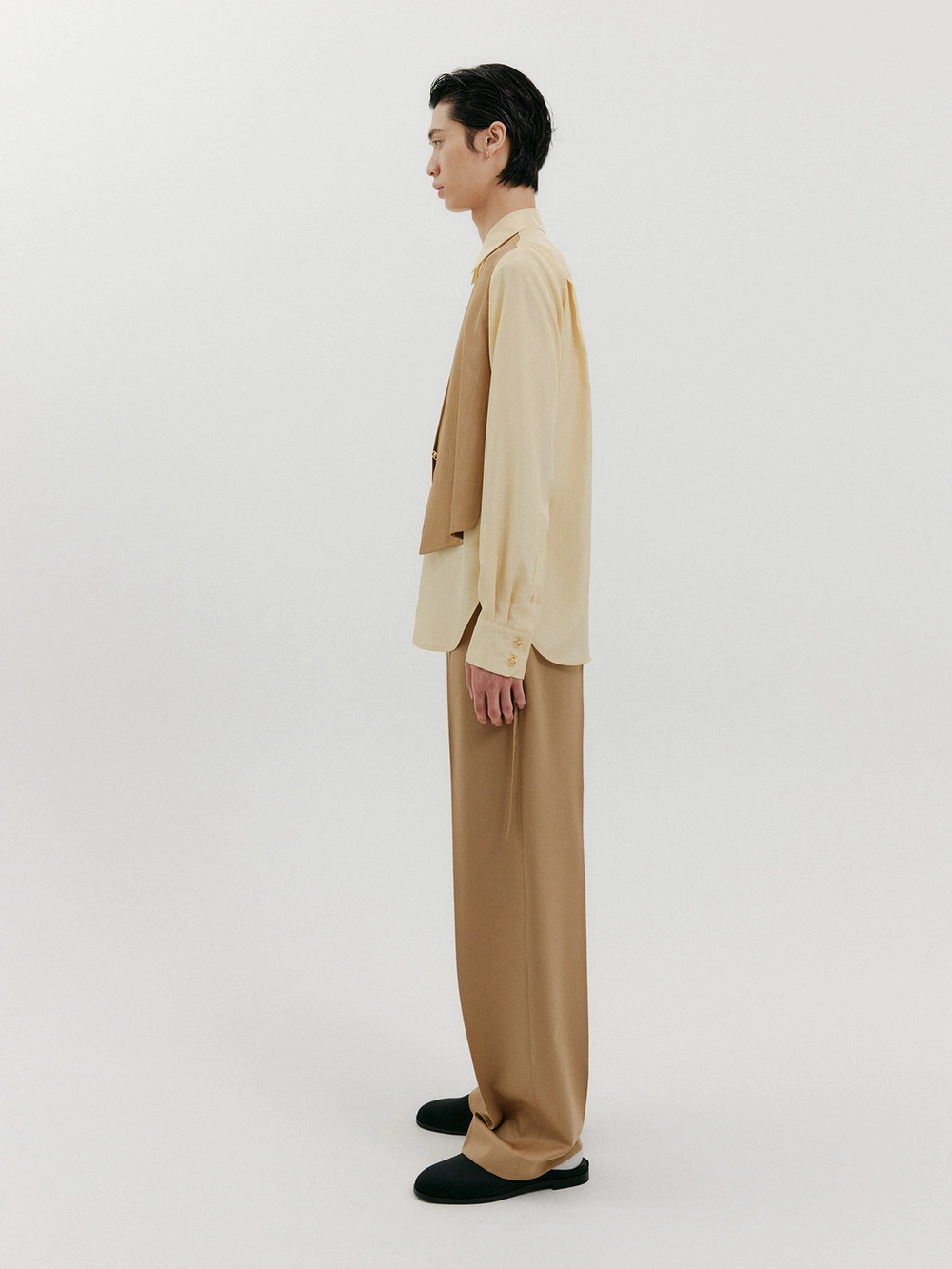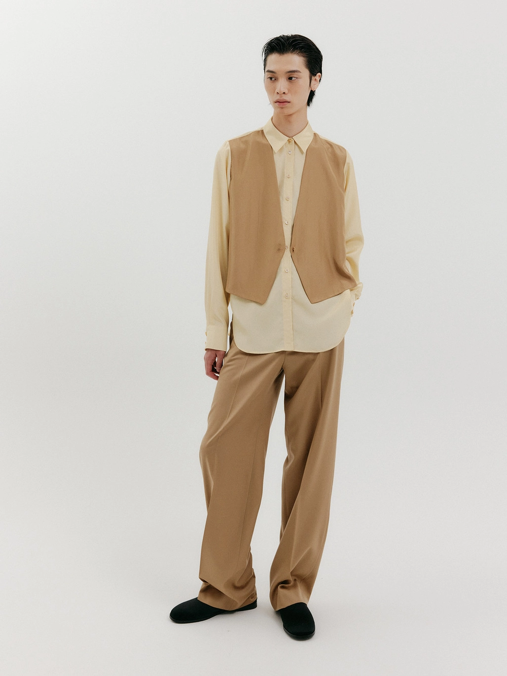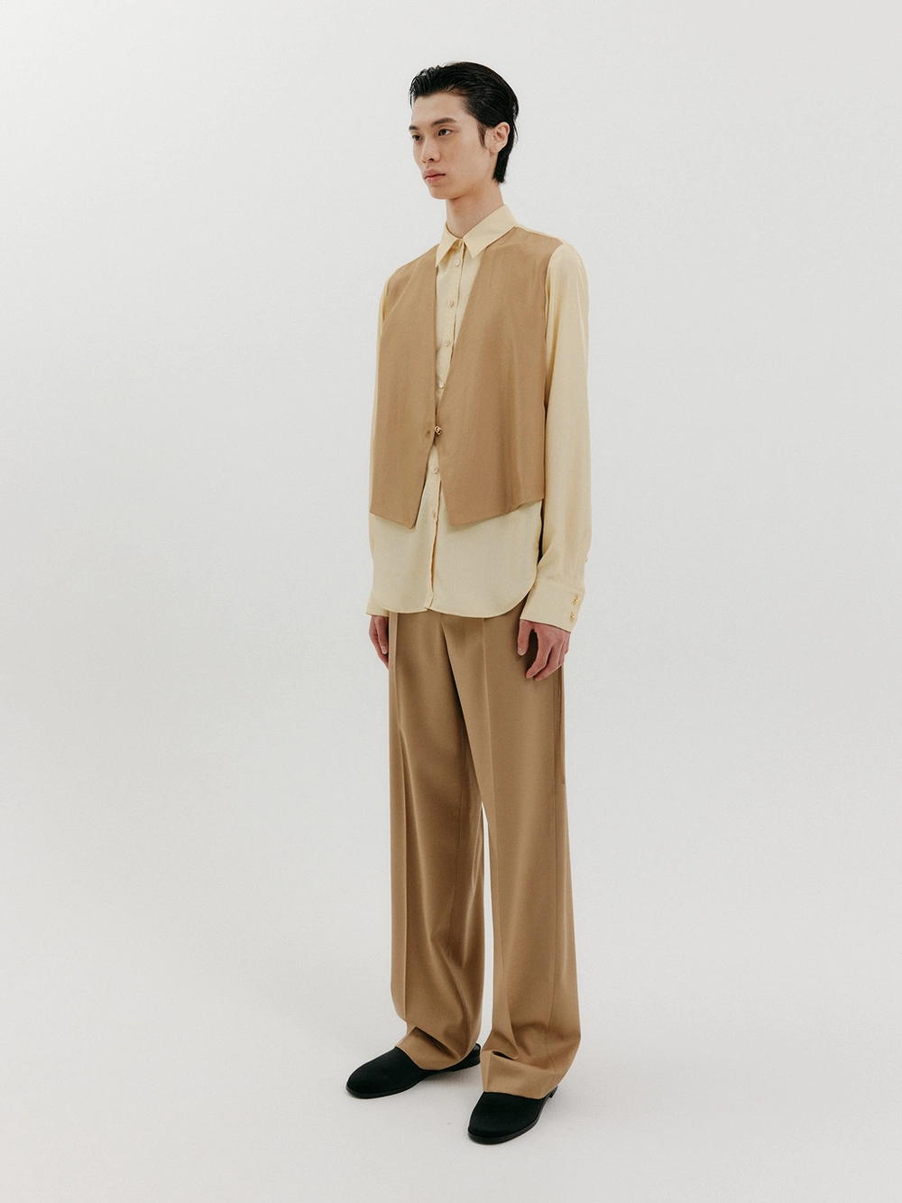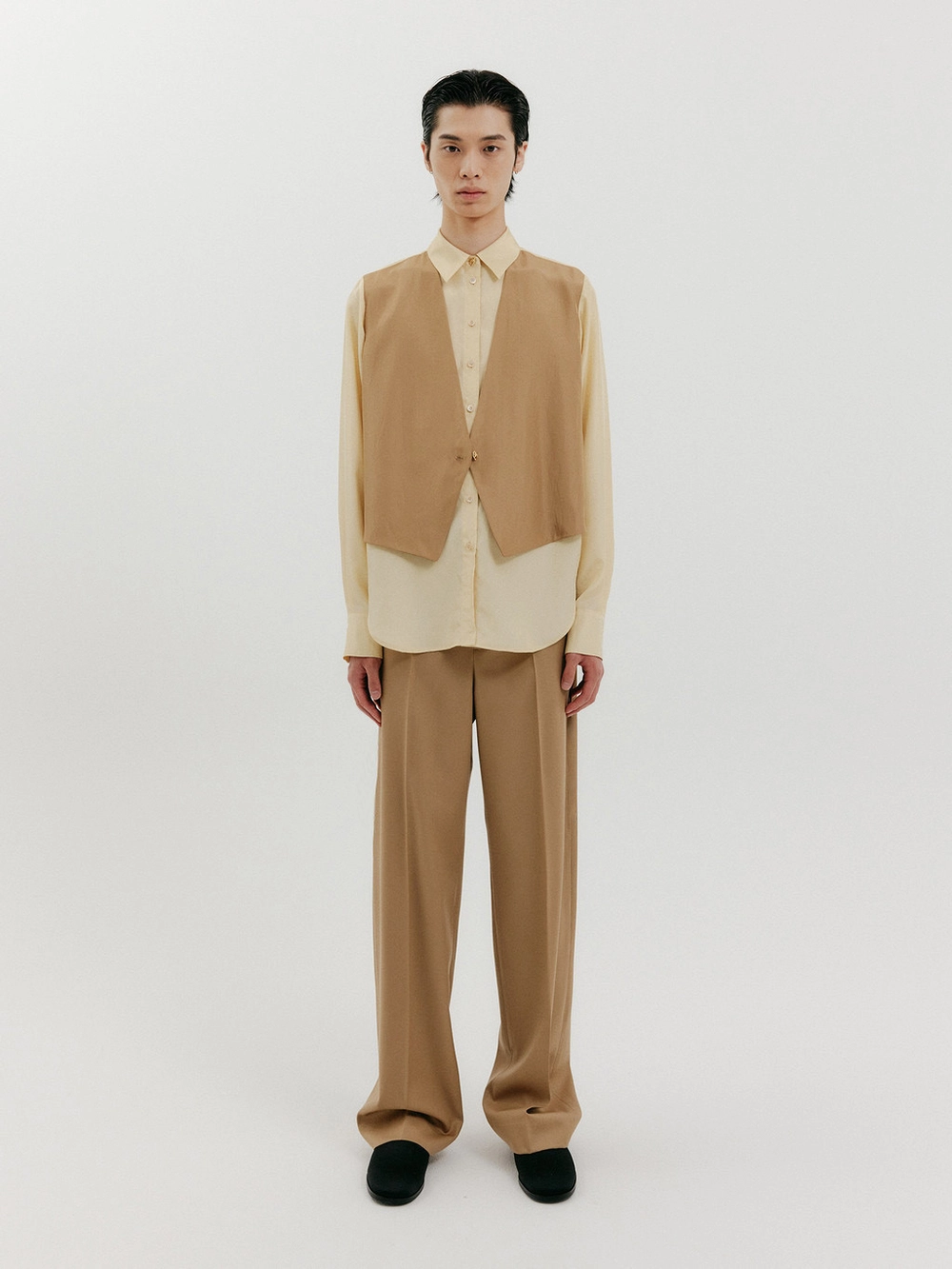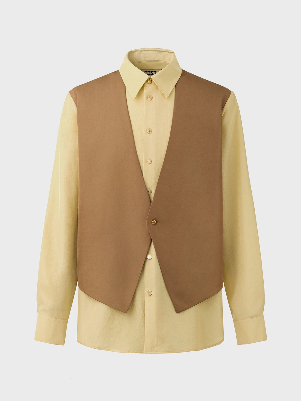 Vest Layered Shirt - Beige/Camel