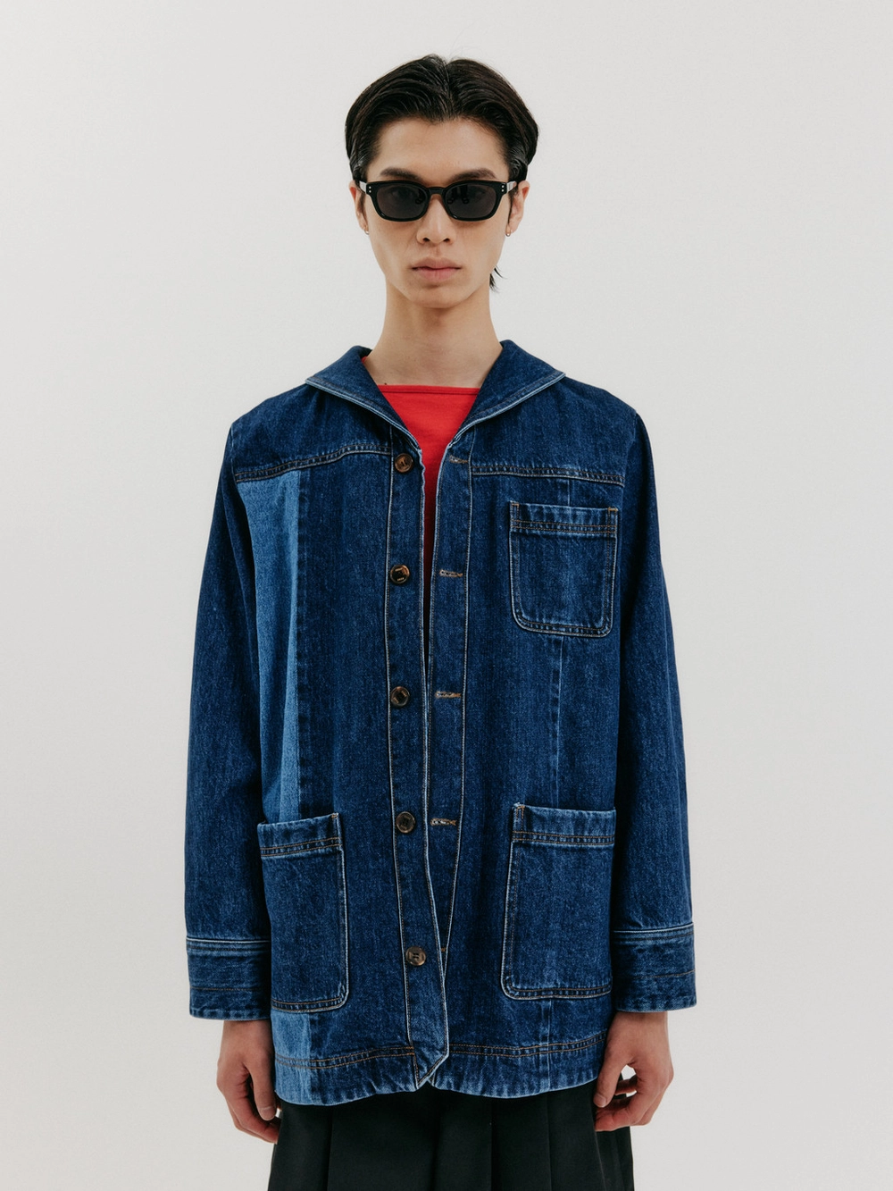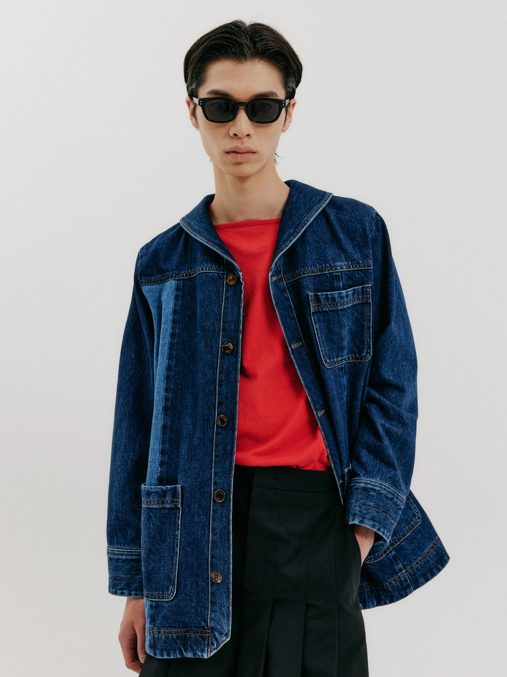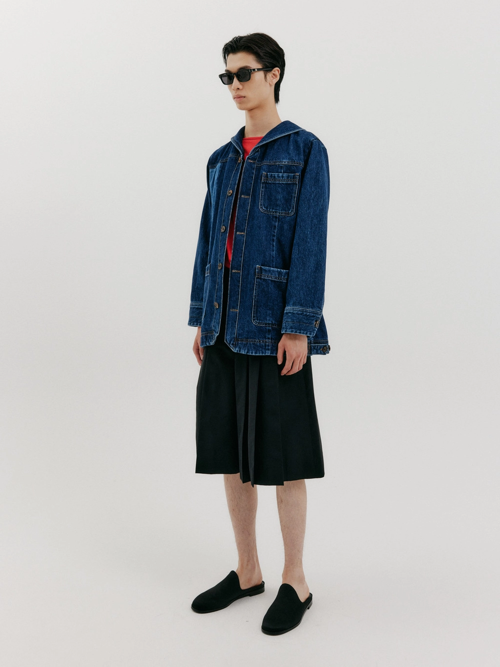 - Sailor collar jacket in denim fabric