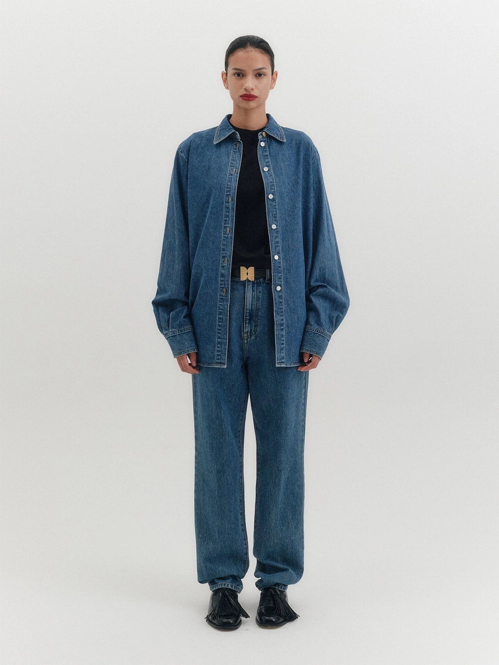 * The product worn by the model is a sample made in size S for the photoshoot. However, there may be differences in total length and specific measurements compared to the actual product. Please refer to the detailed measurements provided on the product page for accurate sizing.