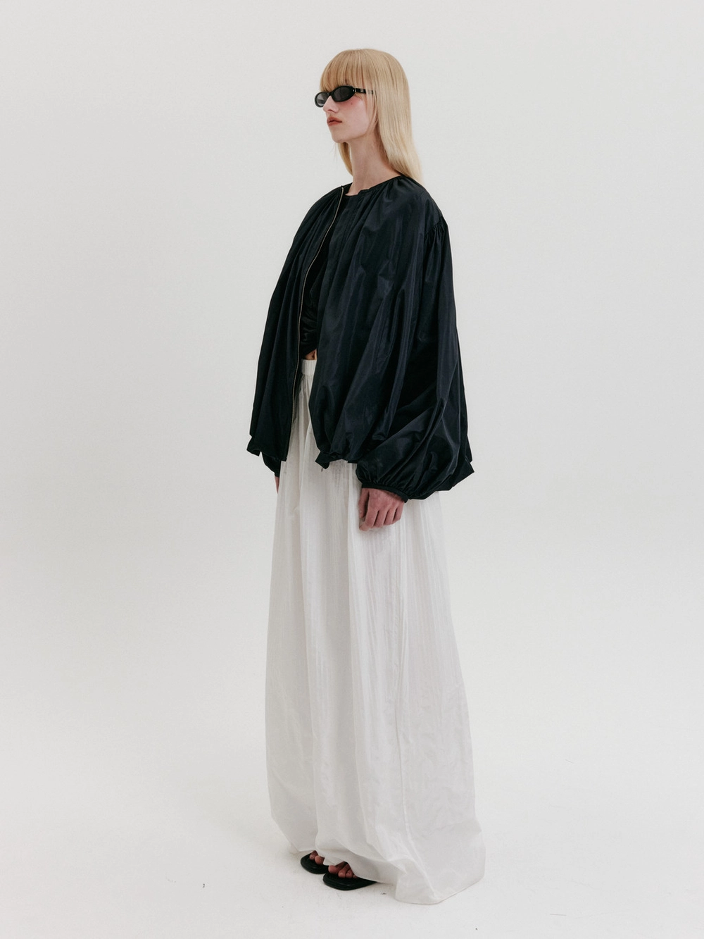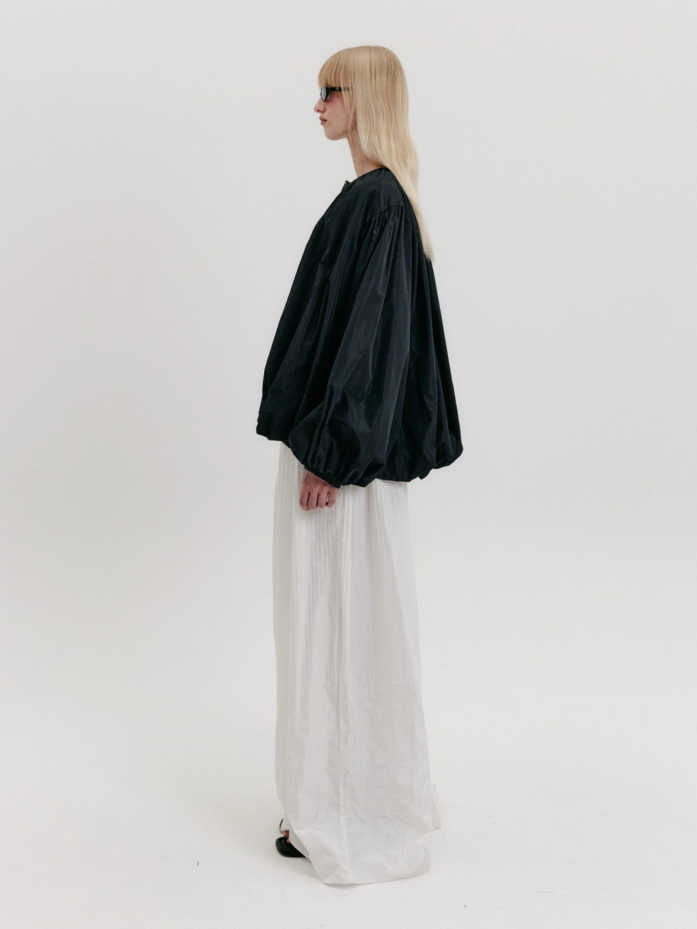 * The product worn by the model is a sample made in size S for the photoshoot. However, there may be differences in total length and specific measurements compared to the actual product. Please refer to the detailed measurements provided on the product page for accurate sizing.
