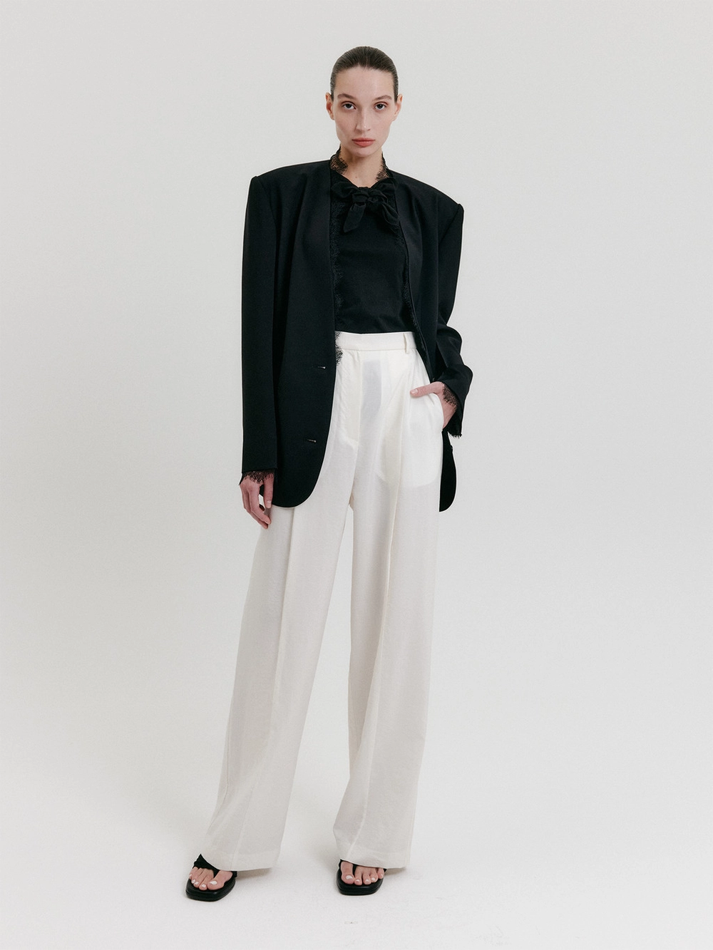 - Wide-fit high-rise pants