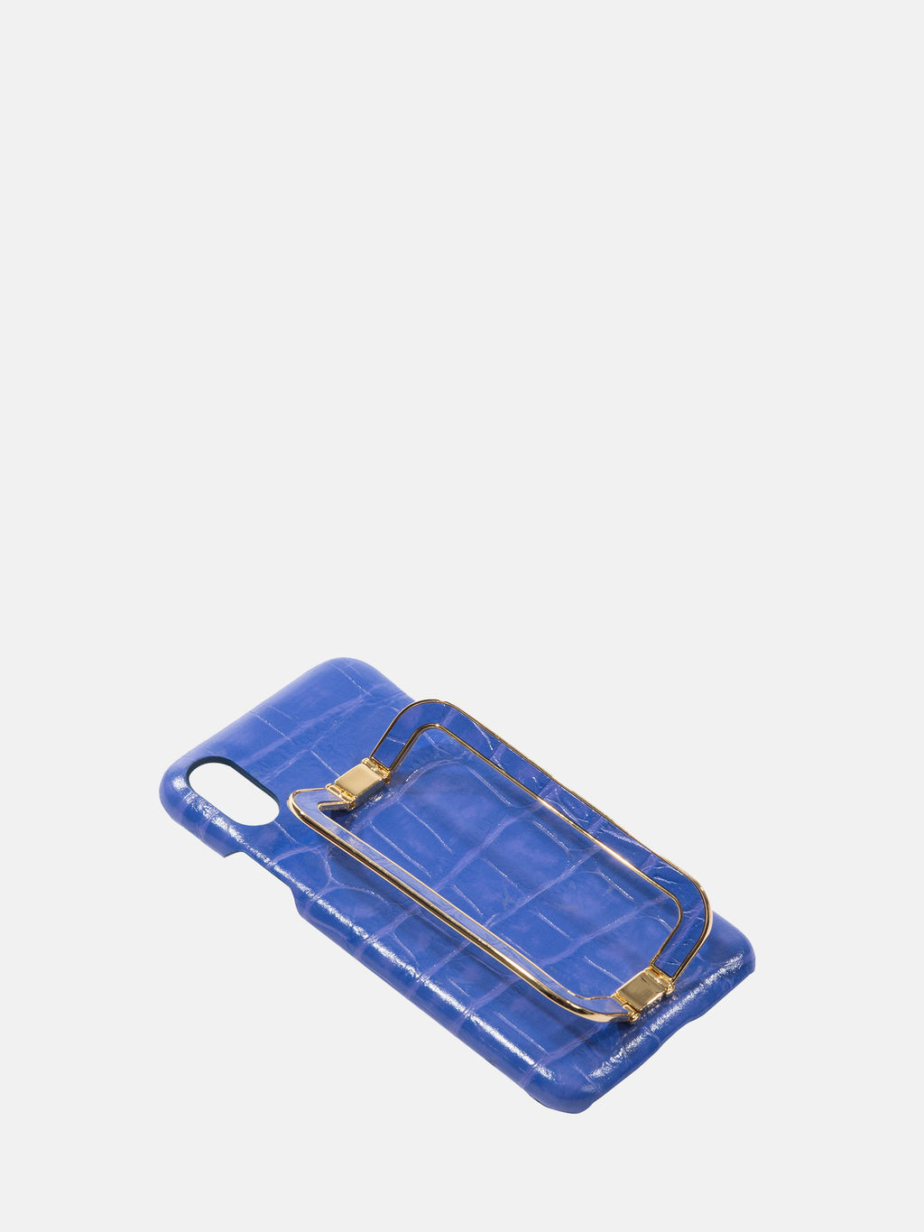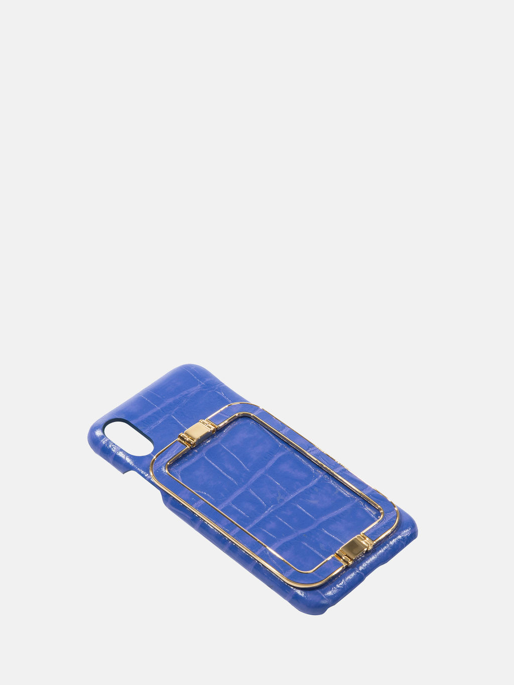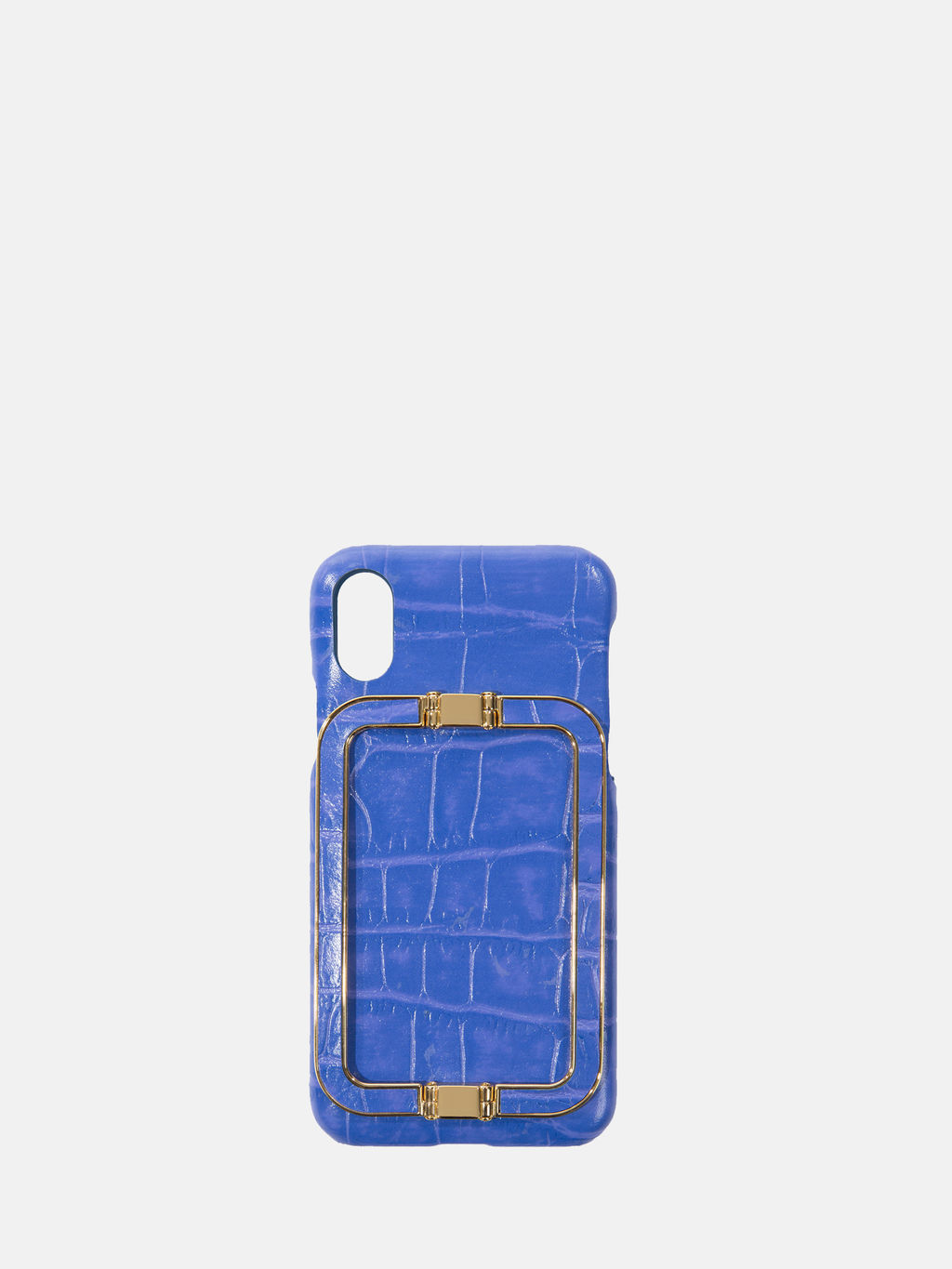 Iphone X/XS case with EENK's signature gold square handles on authentic leather covering the hard case to add a smooth touch. An all-time favorite of the brand.