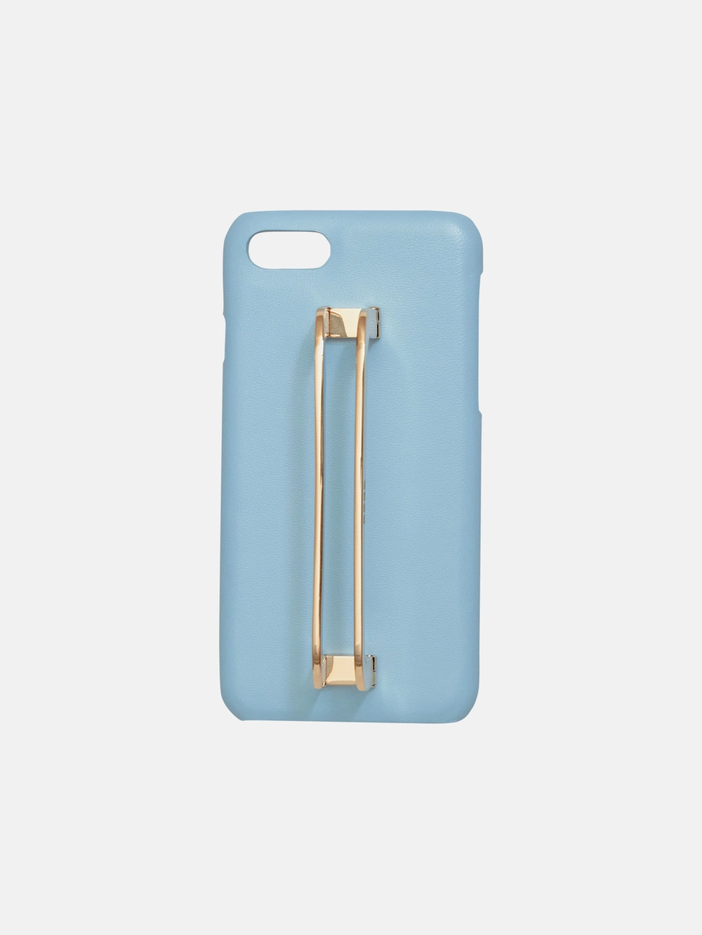 Phone Case with EENK's signature gold square handles on authentic leather covering the hard case to add a smooth touch. An all-time favorite of the brand.