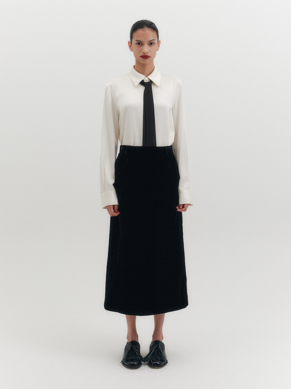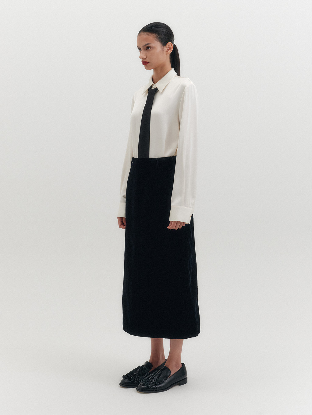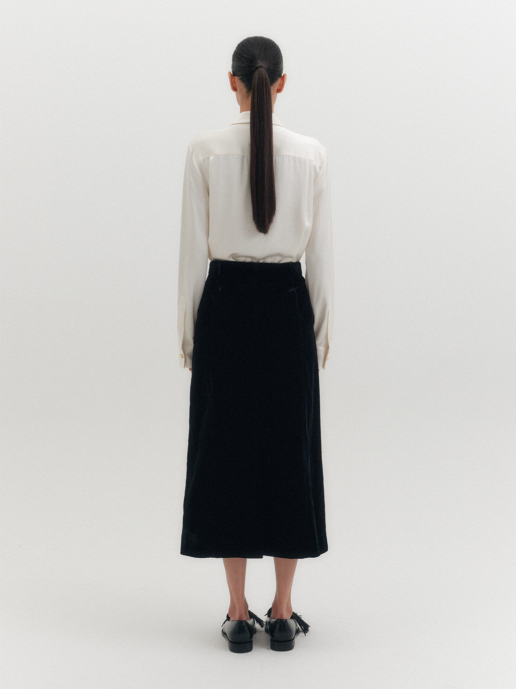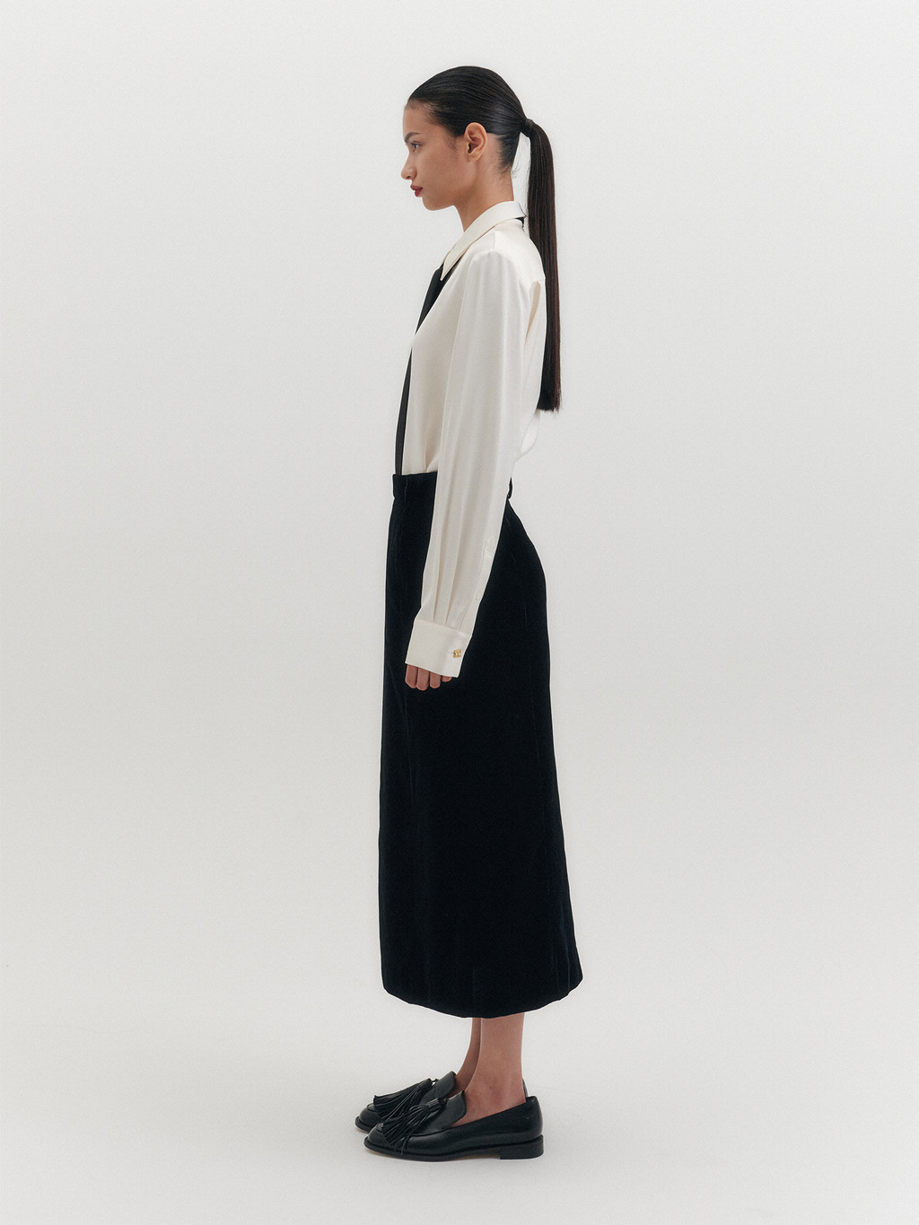 * The product worn by the model is a sample made in size S for the photoshoot. However, there may be differences in total length and specific measurements compared to the actual product. Please refer to the detailed measurements provided on the product page for accurate sizing.