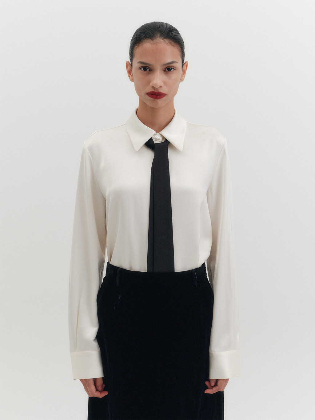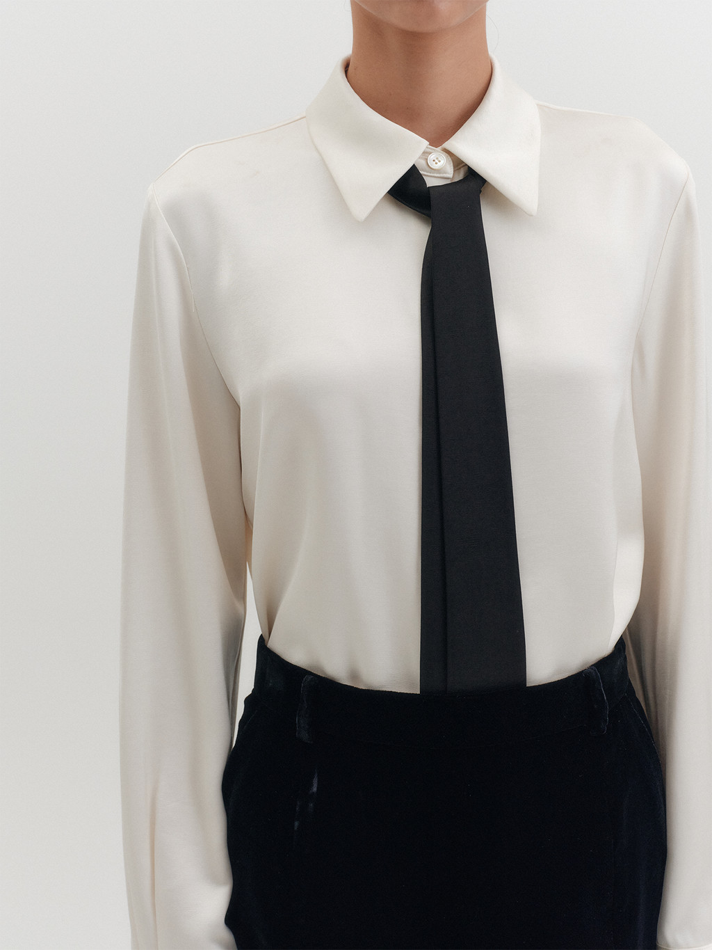 - Detachable tie detail in contrast color
