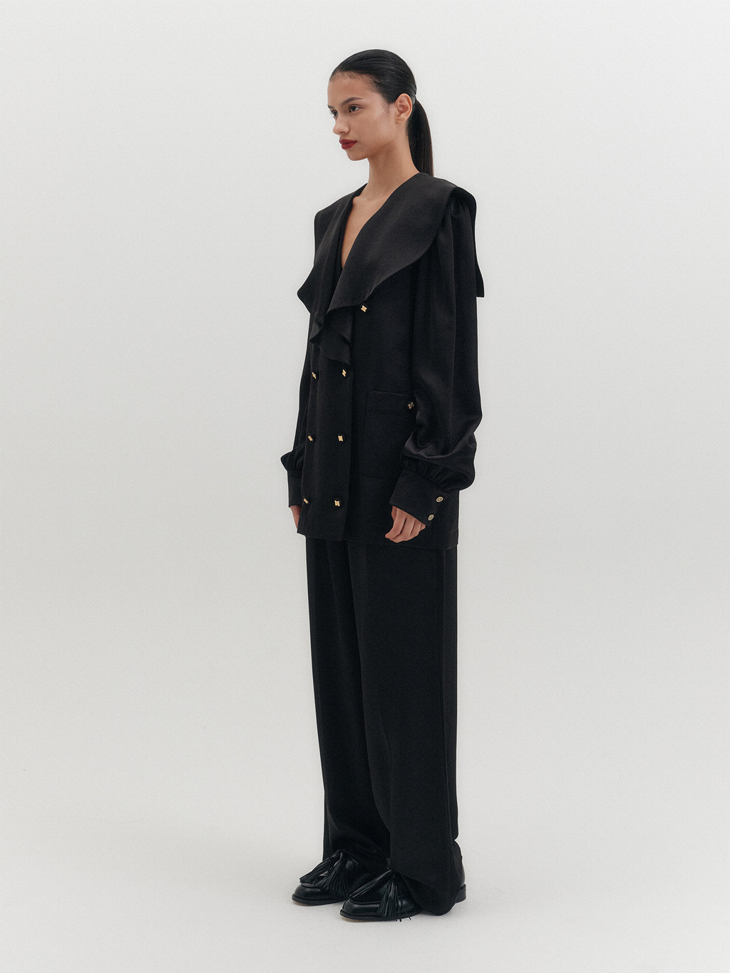 * The product worn by the model is a sample made in size S for the photoshoot. However, there may be differences in total length and specific measurements compared to the actual product. Please refer to the detailed measurements provided on the product page for accurate sizing.