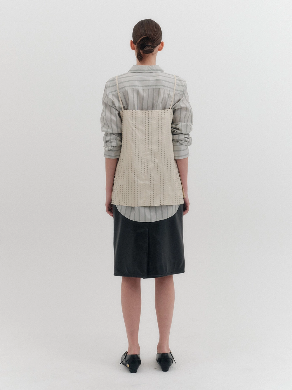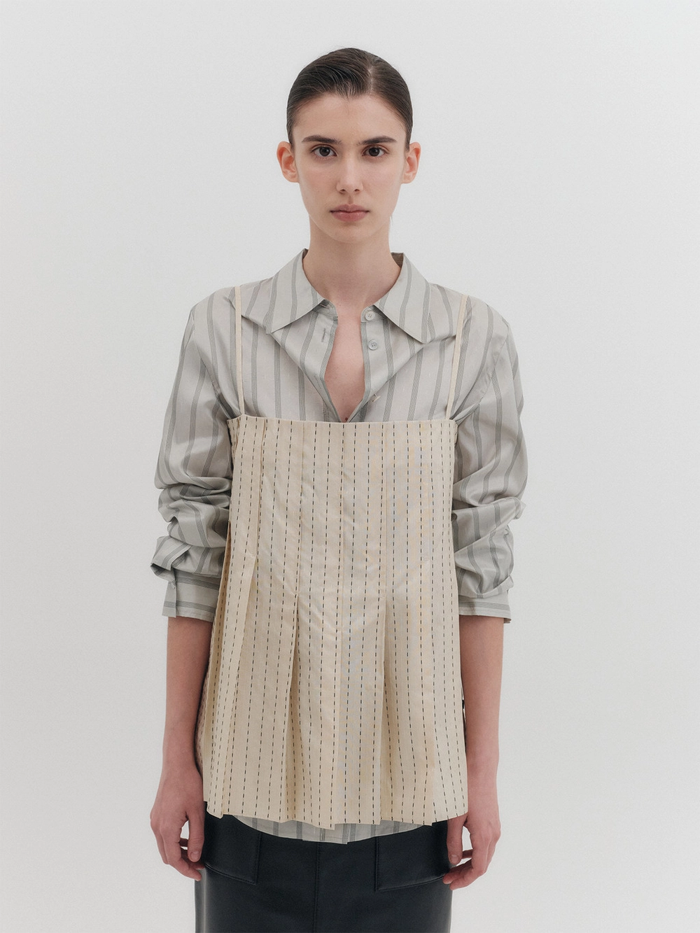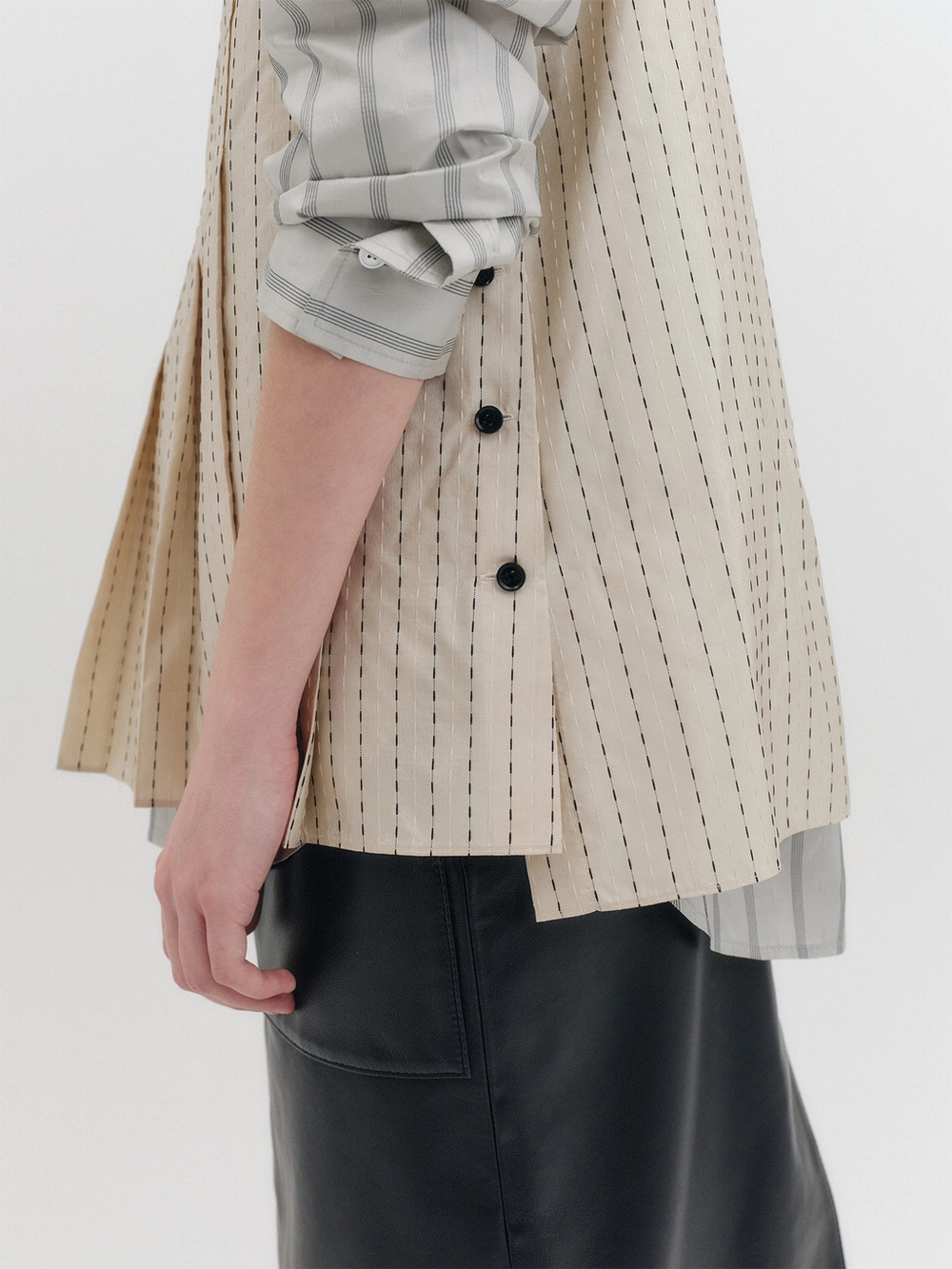 * The product worn by the model is a sample made in size S for the photoshoot. However, there may be differences in total length and specific measurements compared to the actual product. Please refer to the detailed measurements provided on the product page for accurate sizing.