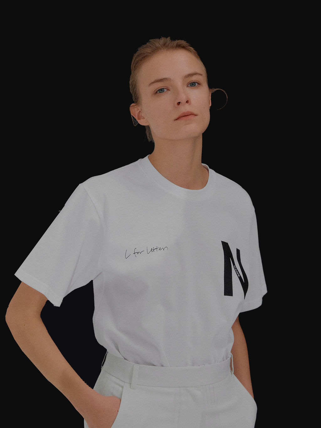 - L for Letter 라인의 알파벳 프린팅 티셔츠입니다.