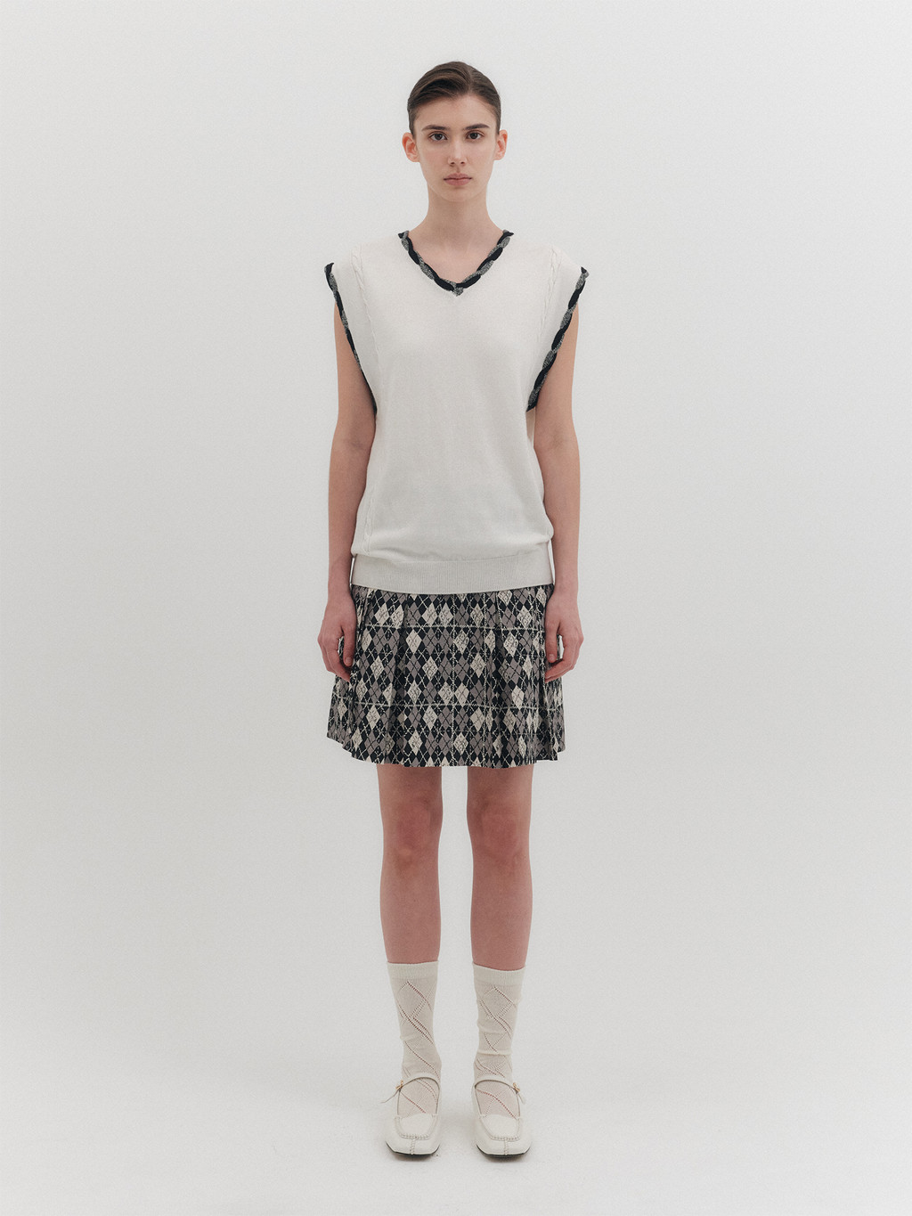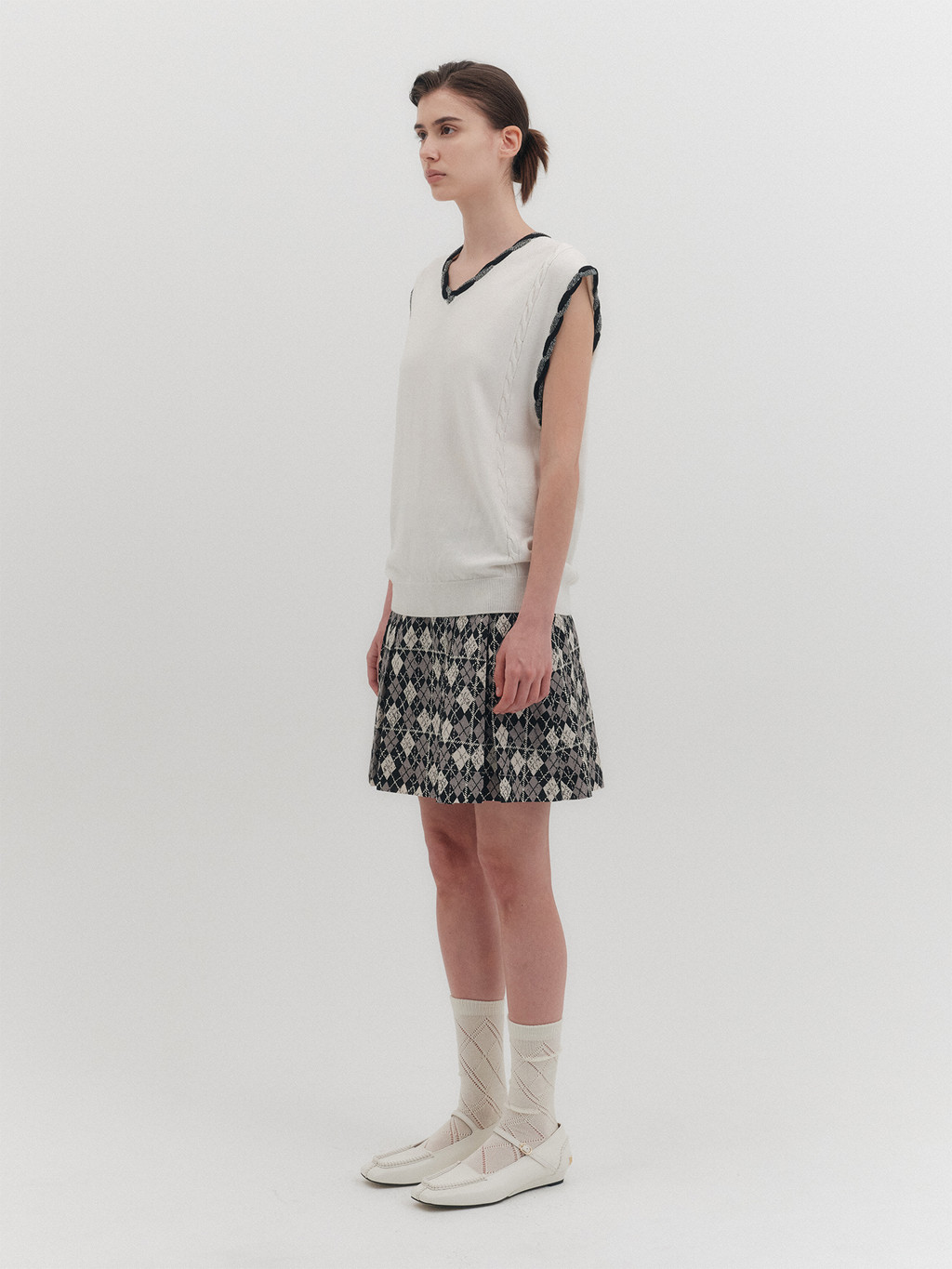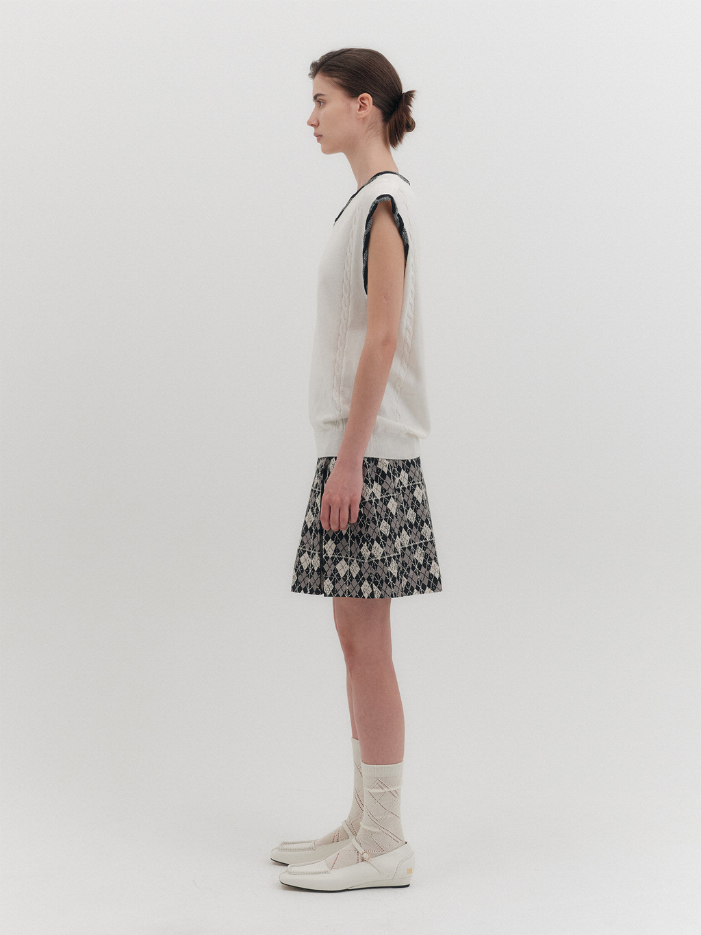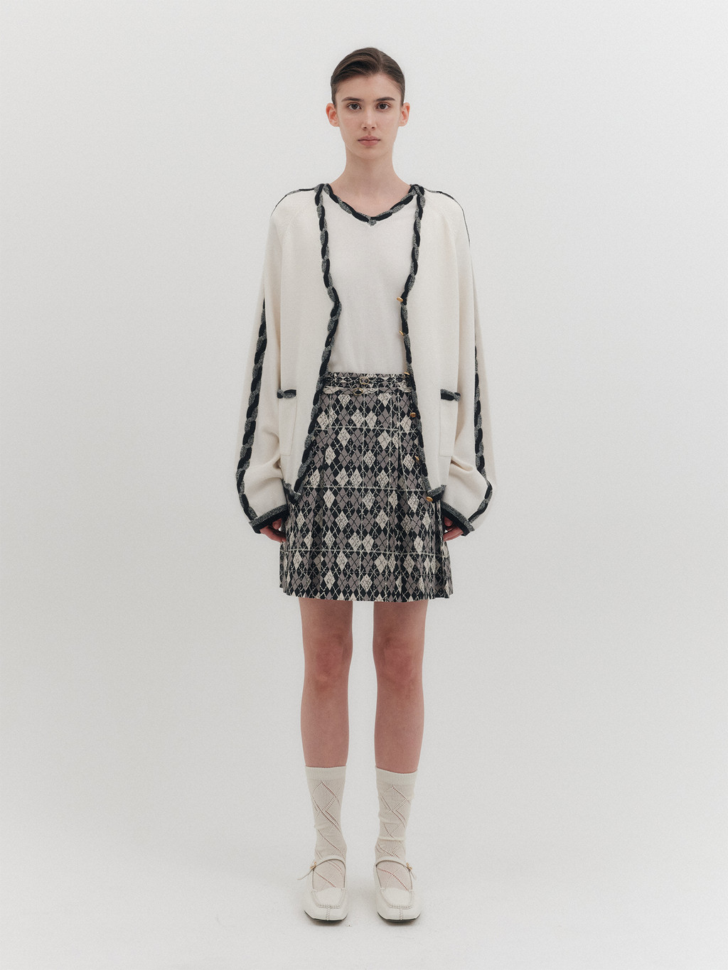 * The product worn by the model is a sample made in size S for the photoshoot. However, there may be differences in total length and specific measurements compared to the actual product. Please refer to the detailed measurements provided on the product page for accurate sizing.