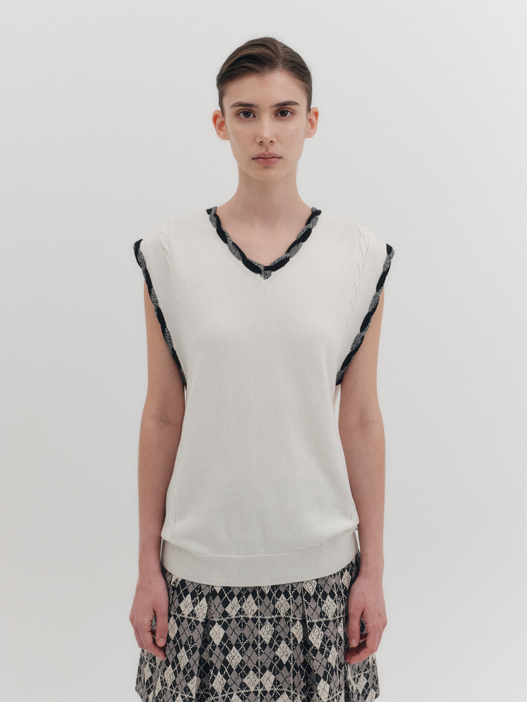 - Relaxed-fit sleeveless cropped knit top
