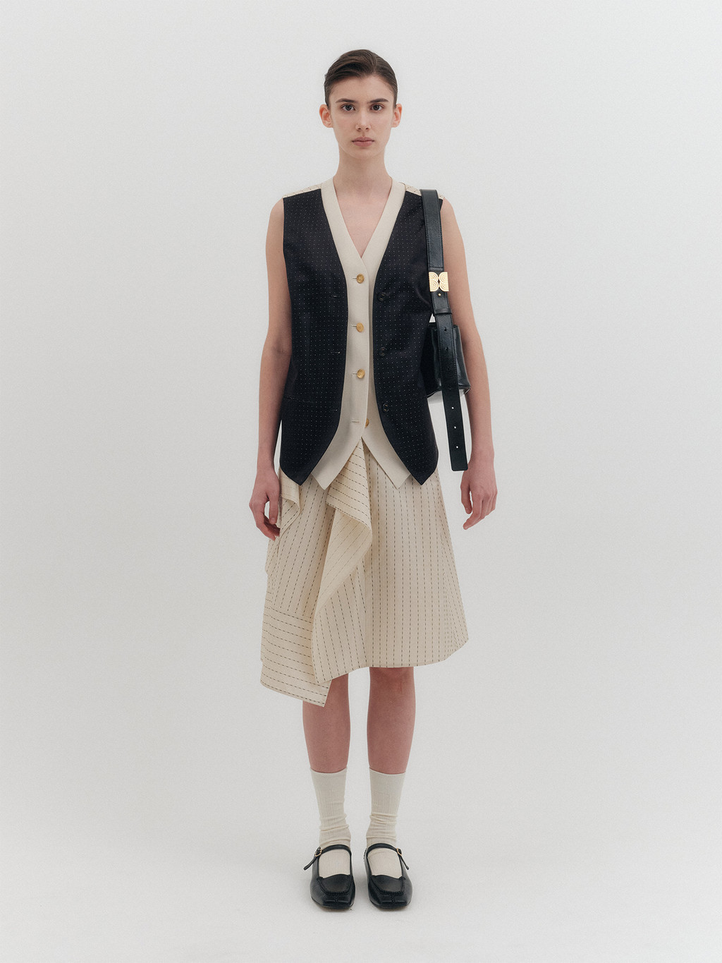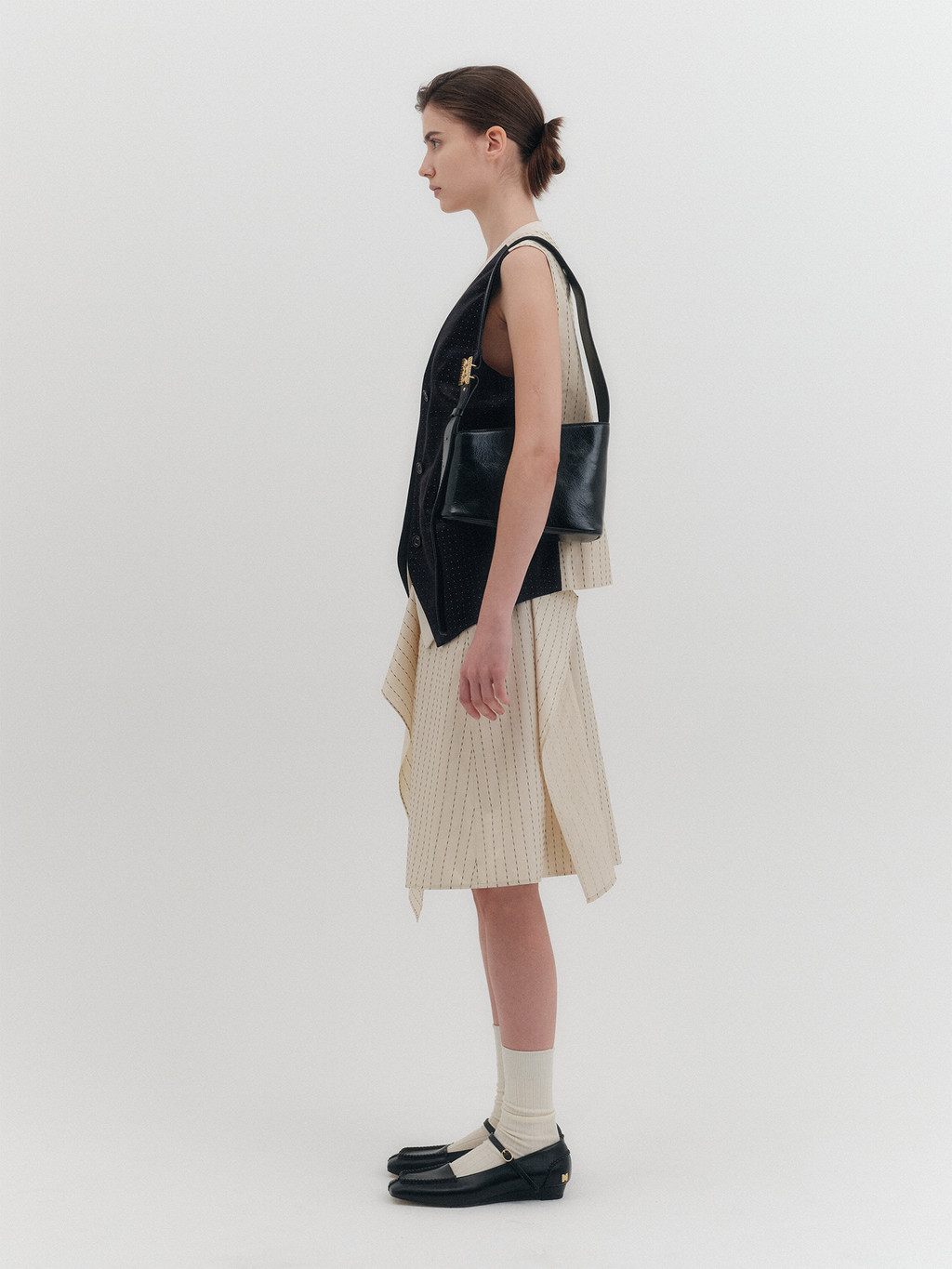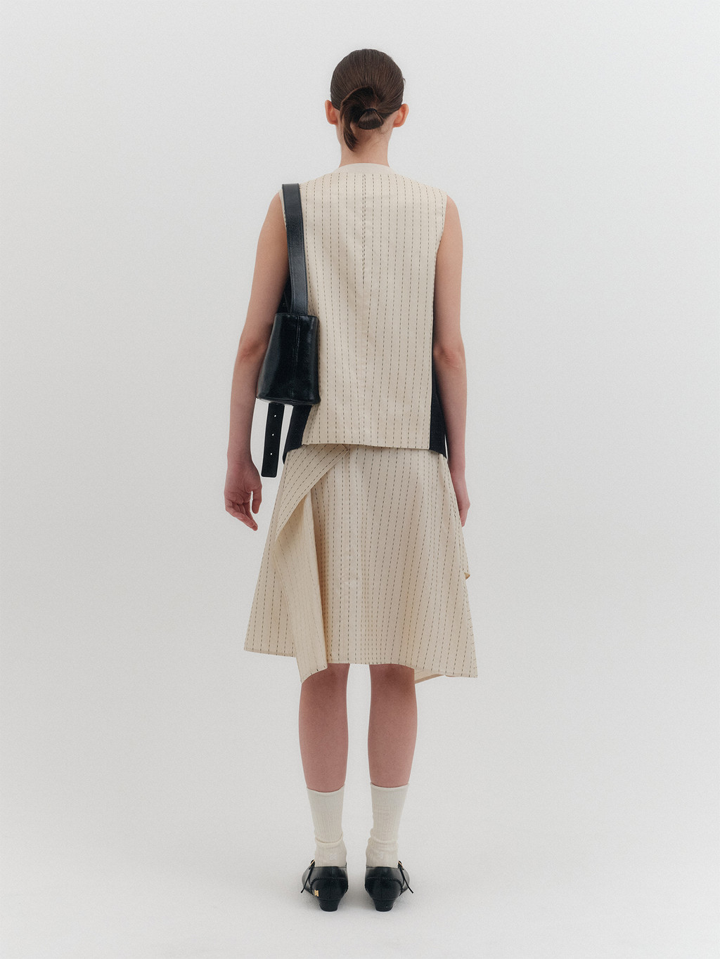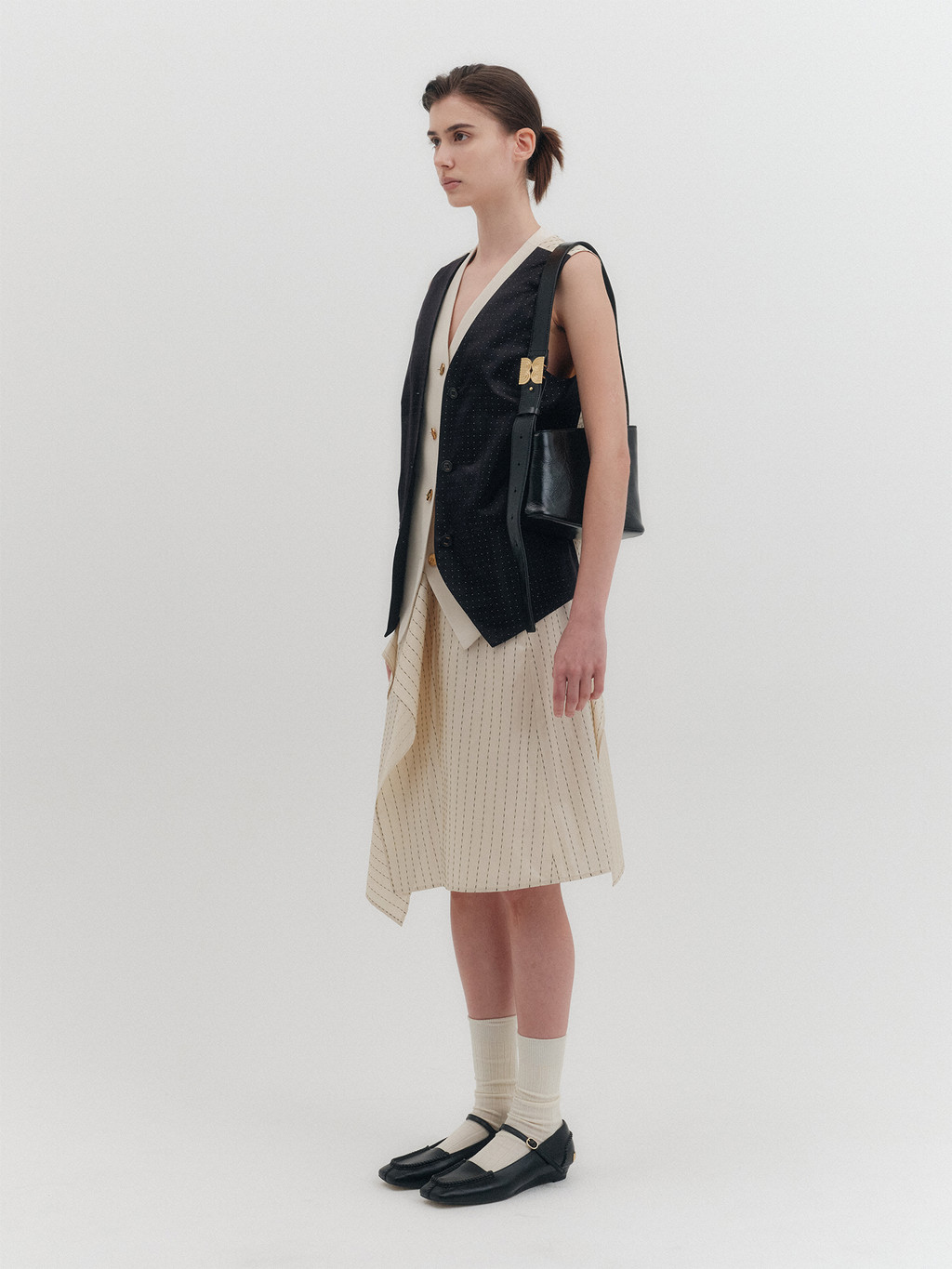 * The product worn by the model is a sample made in size S for the photoshoot. However, there may be differences in total length and specific measurements compared to the actual product. Please refer to the detailed measurements provided on the product page for accurate sizing.