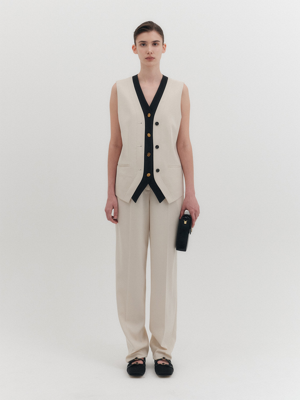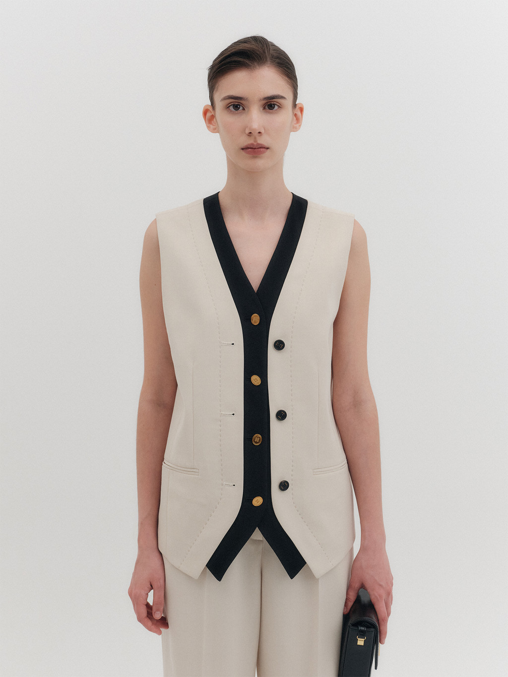 - Inner contrast vest layered design
