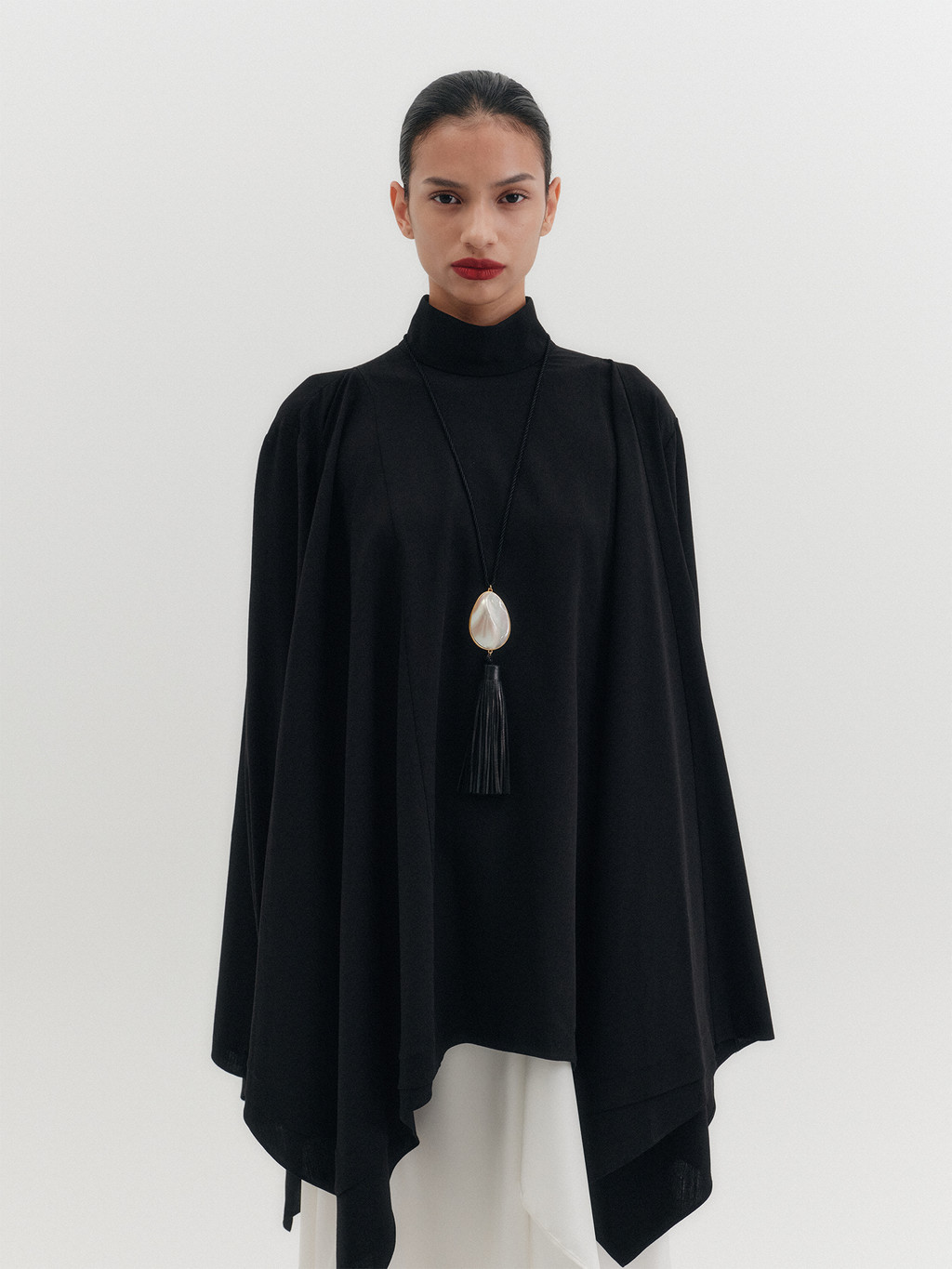 - Loose-fit high-neck blouse