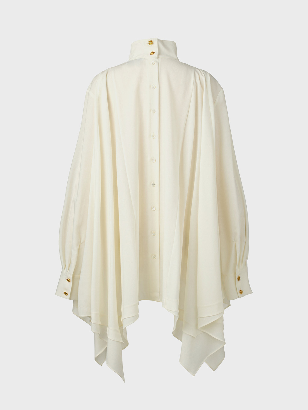 - EENK’s signature gold rose buttons at neckline and cuffs