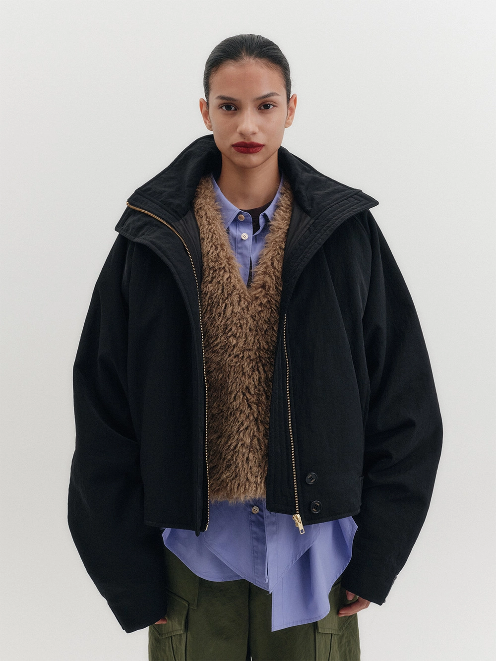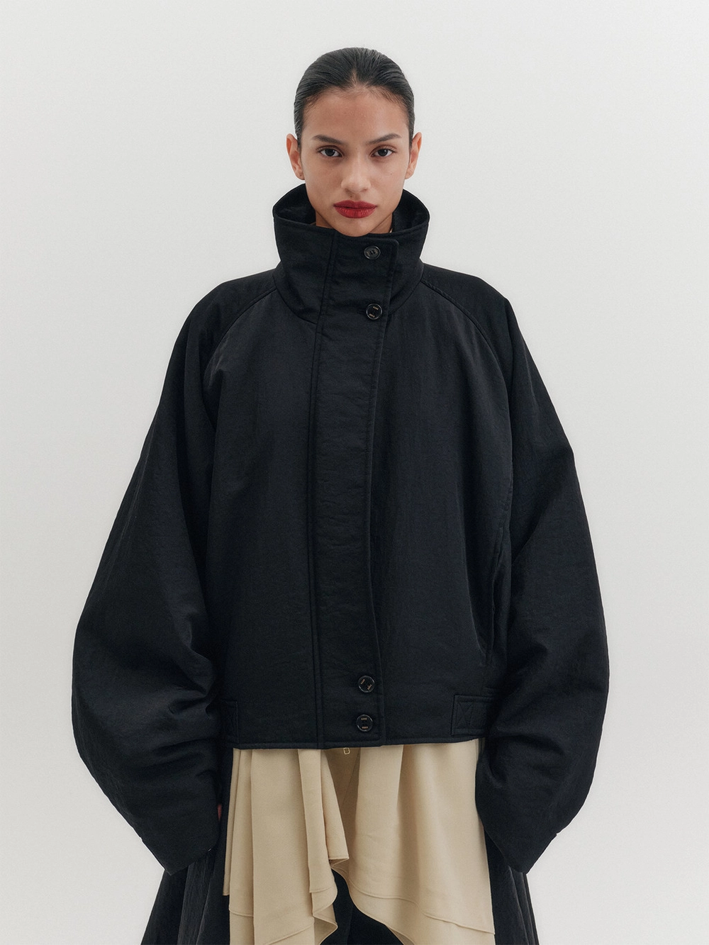 - Button-closure high neck