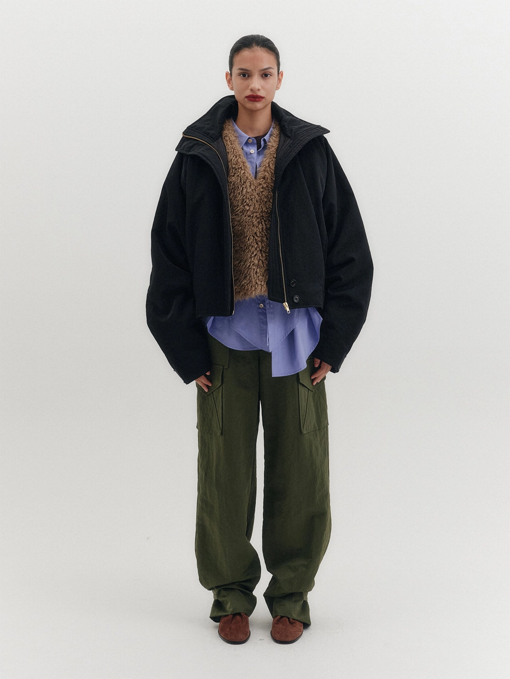 - The product worn by the model is a sample and is produced based on size S. However, there may be differences in total length and detailed sizes compared to the final product. Please refer to the detailed measurements provided on the product page for accurate sizing information.