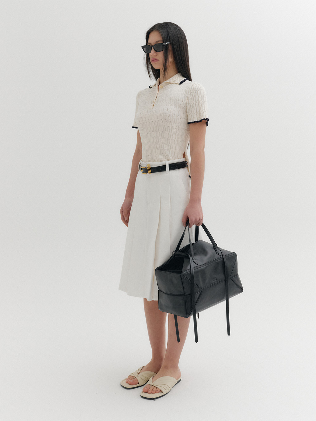 * The product worn by the model is a sample and is produced based on size S. However, there may be differences in total length and detailed sizes compared to the final product. Please refer to the detailed measurements provided on the product page for accurate sizing information.