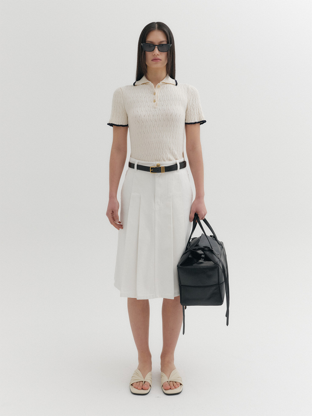 * The product worn by the model is a sample made in size S for the photoshoot. However, there may be differences in total length and specific measurements compared to the actual product. Please refer to the detailed measurements provided on the product page for accurate sizing.