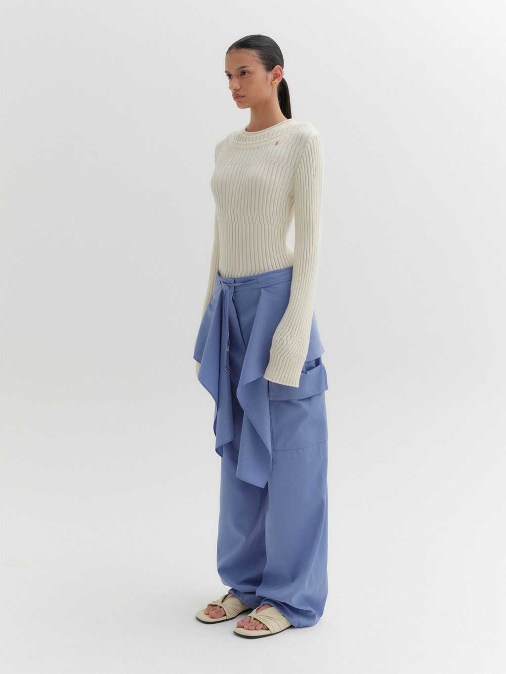 * The product worn by the model is a sample and is produced based on size S. However, there may be differences in total length and detailed sizes compared to the final product. Please refer to the detailed measurements provided on the product page for accurate sizing information.