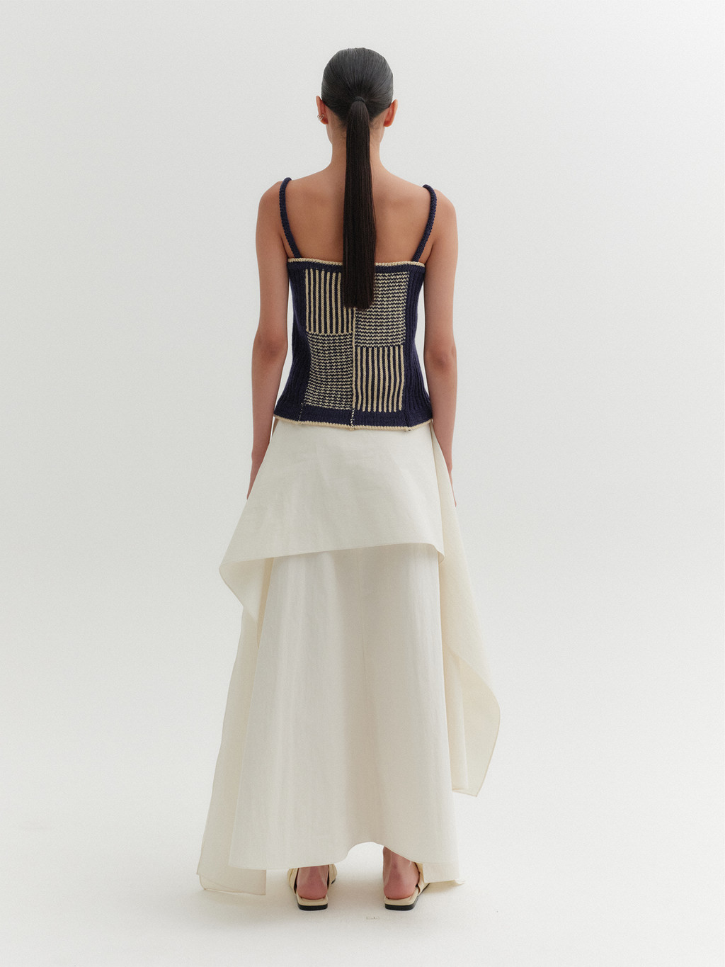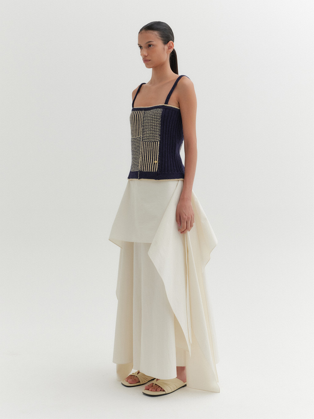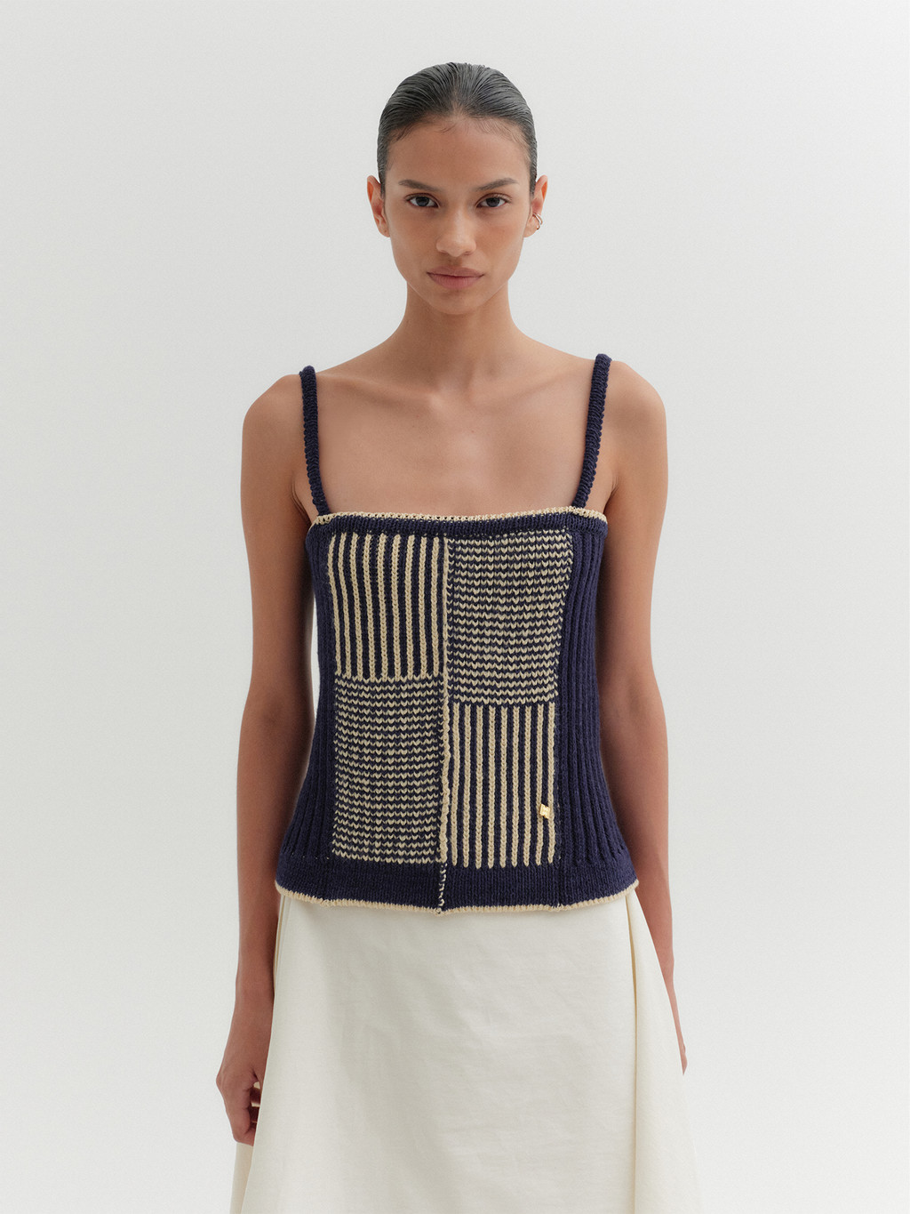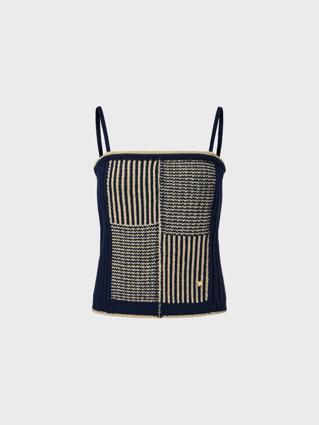 Textured Sleeveless Knit Top - Navy/BeigeNEW