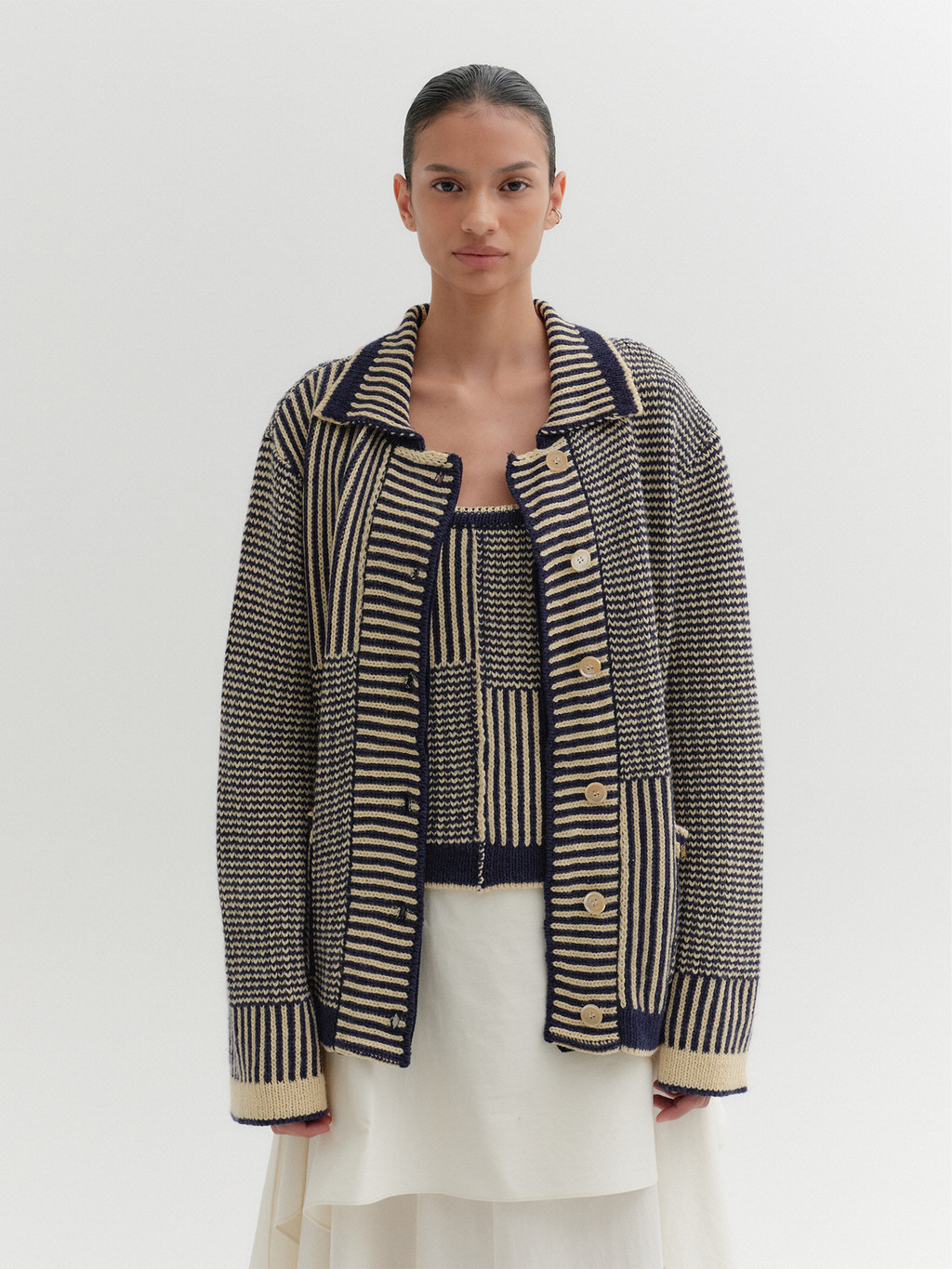 * The product worn by the model is a sample and is produced based on size S. However, there may be differences in total length and detailed sizes compared to the final product. Please refer to the detailed measurements provided on the product page for accurate sizing information.
