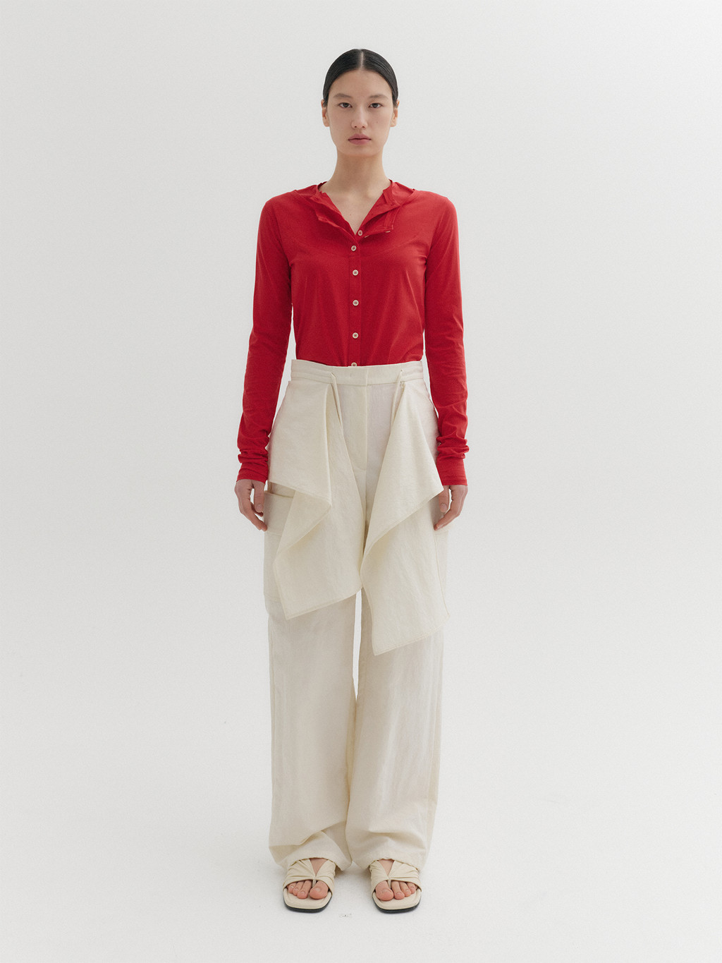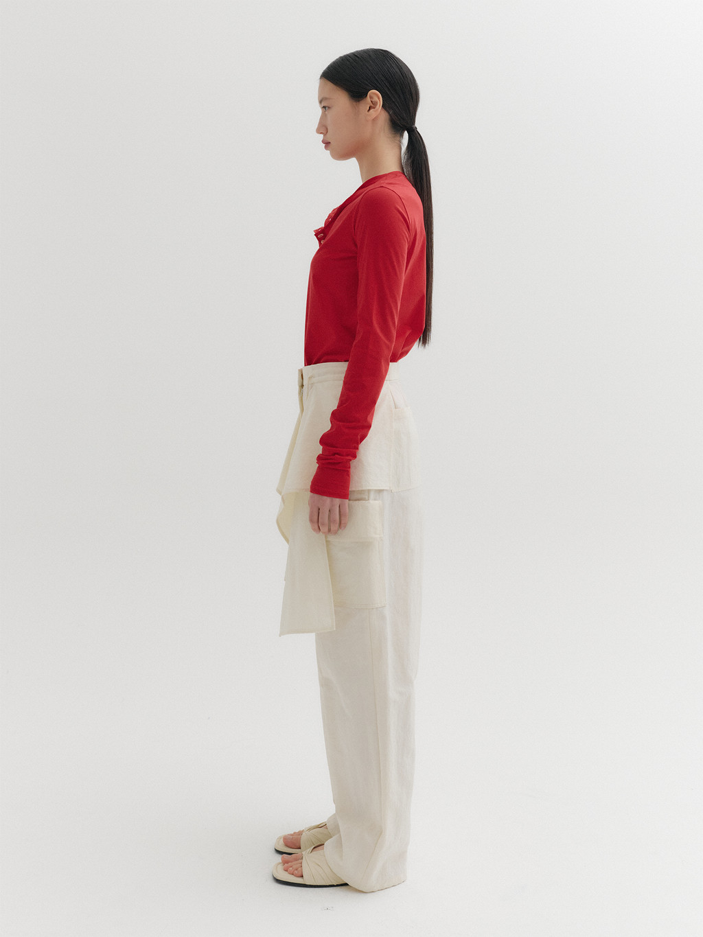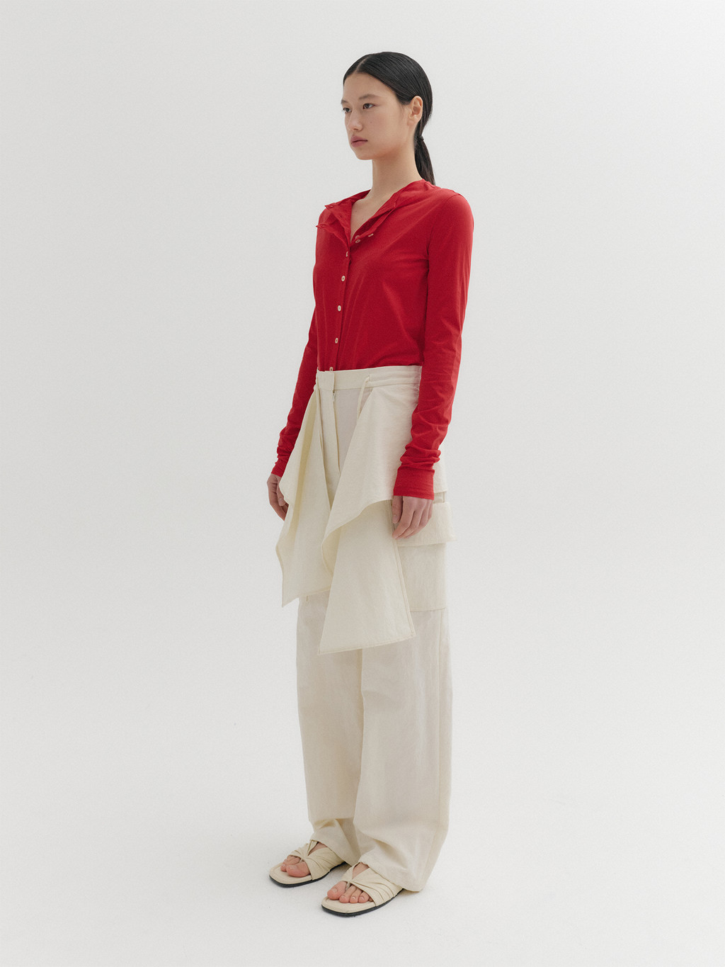 * The product worn by the model is a sample made in size S for the photoshoot. However, there may be differences in total length and specific measurements compared to the actual product. Please refer to the detailed measurements provided on the product page for accurate sizing.