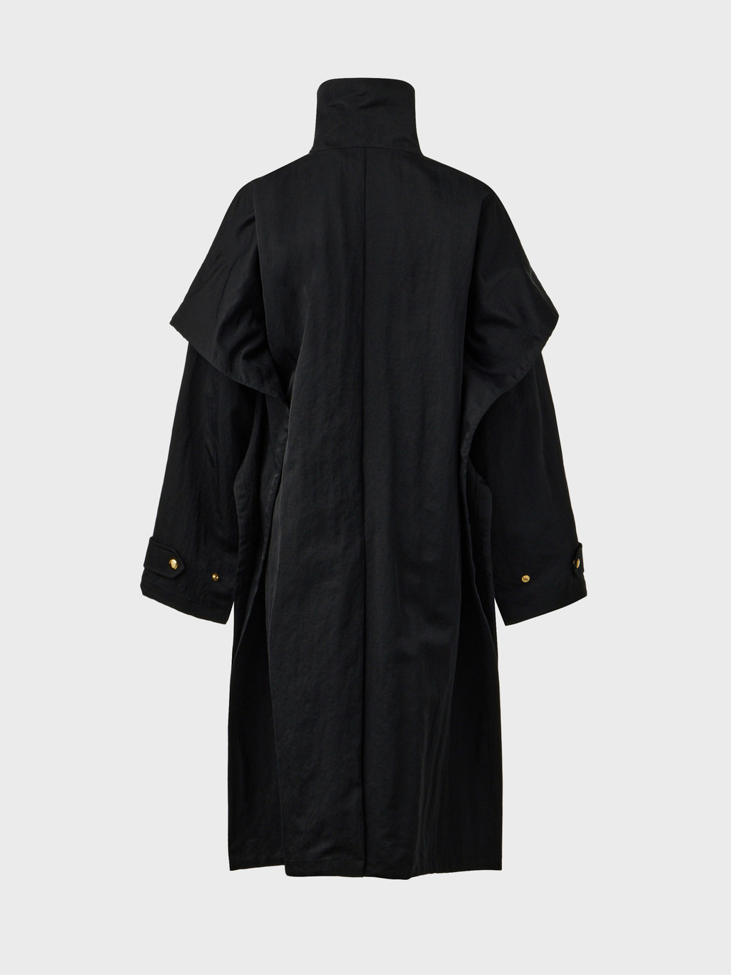 - High neck button-closure