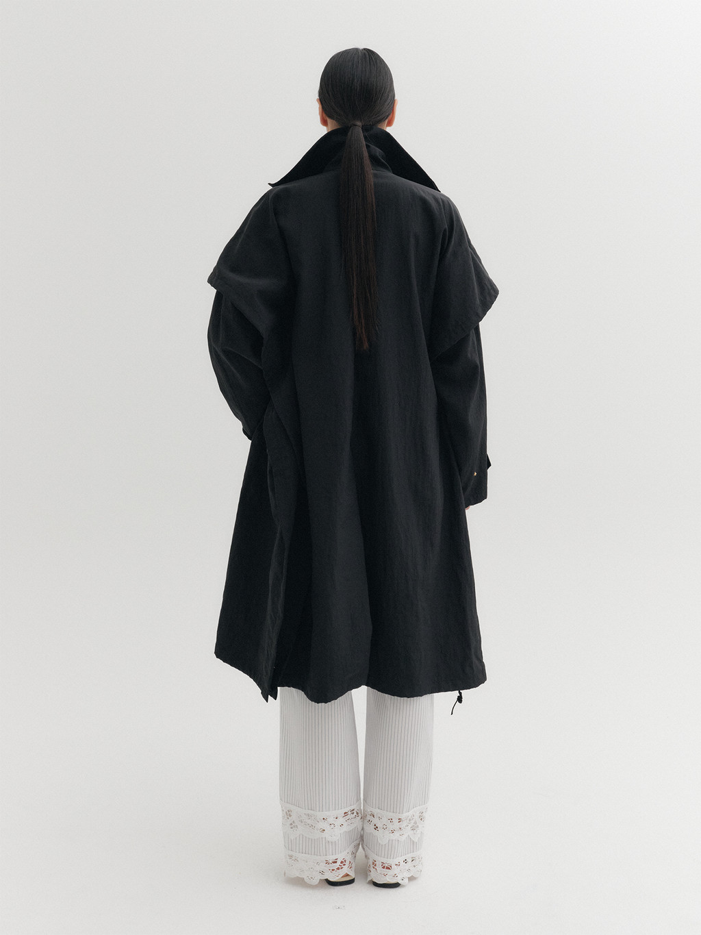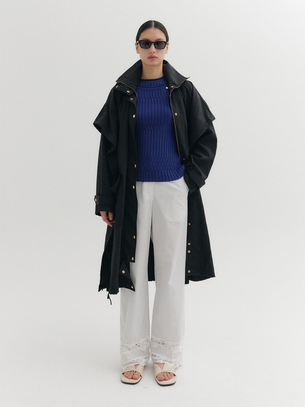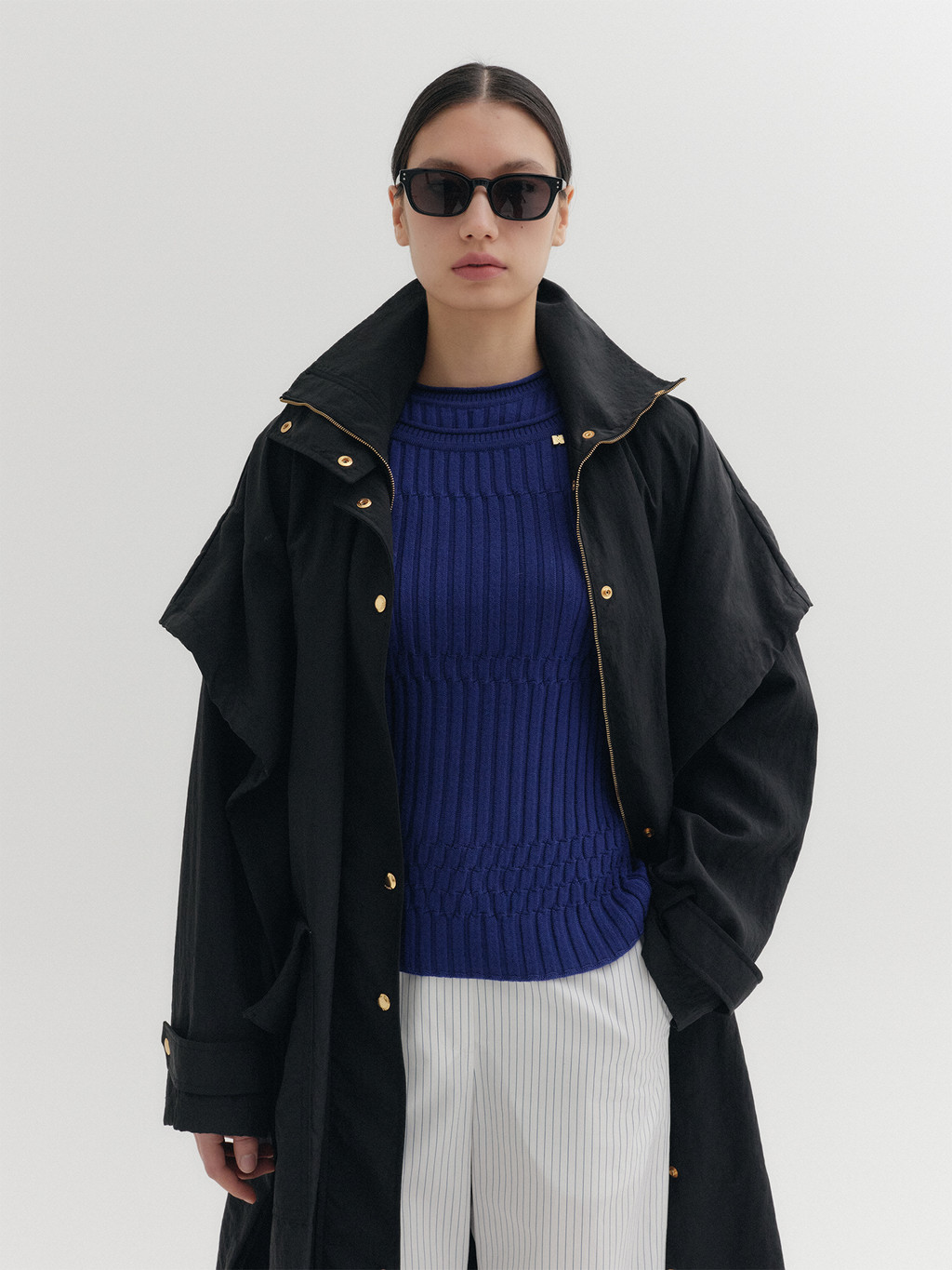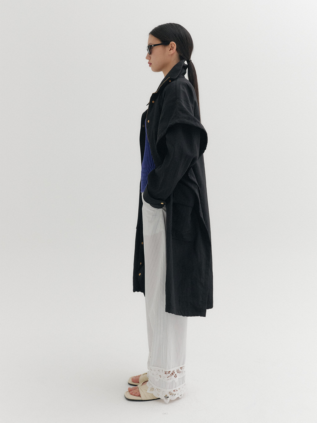 * The product worn by the model is a sample made in size S for the photoshoot. However, there may be differences in total length and specific measurements compared to the actual product. Please refer to the detailed measurements provided on the product page for accurate sizing.