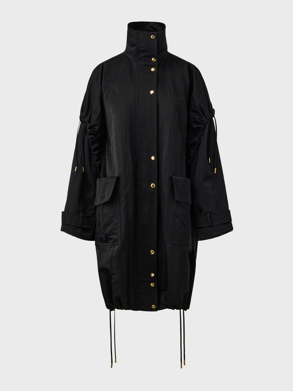 - Shirred sleeves and hem