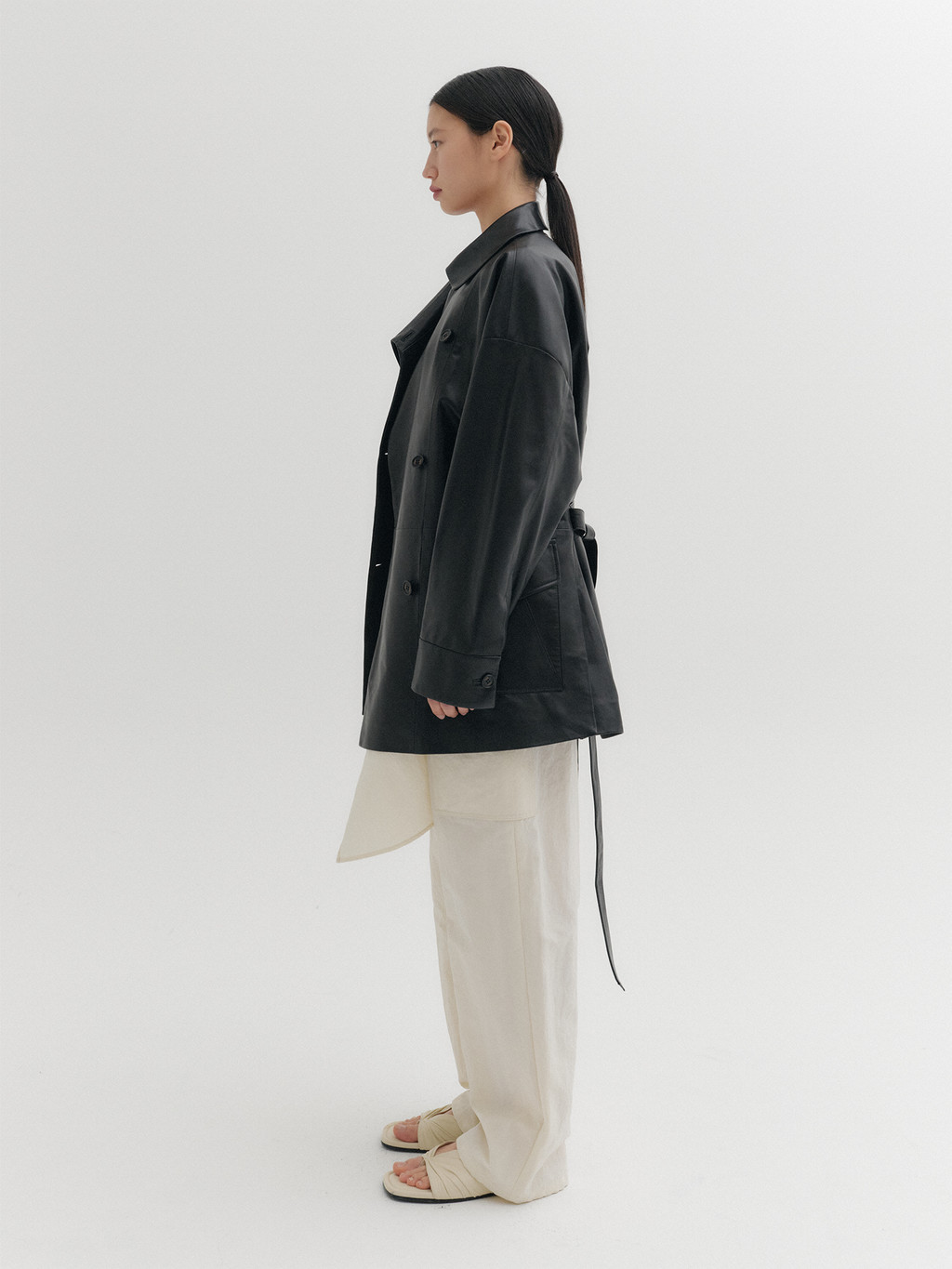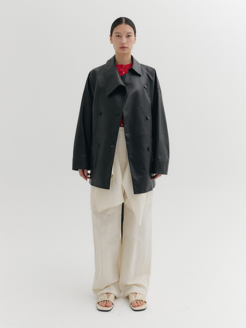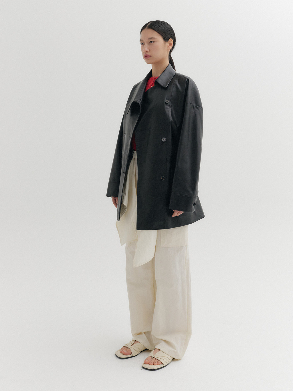 * The product worn by the model is a sample made in size S for the photoshoot. However, there may be differences in total length and specific measurements compared to the actual product. Please refer to the detailed measurements provided on the product page for accurate sizing.