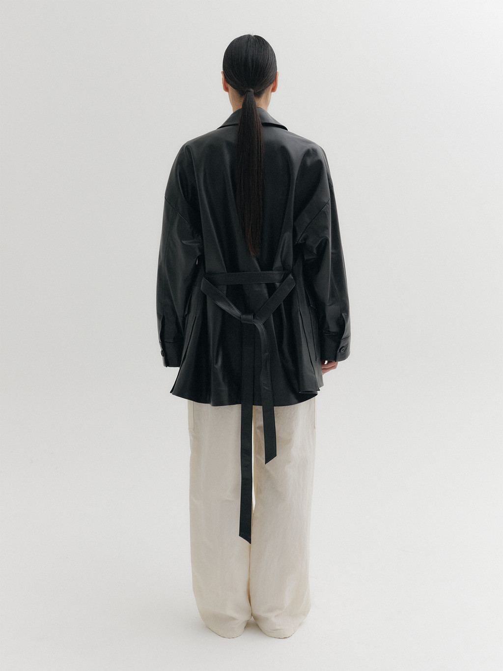 - Adjustable belt closure for versatile silhouette styling