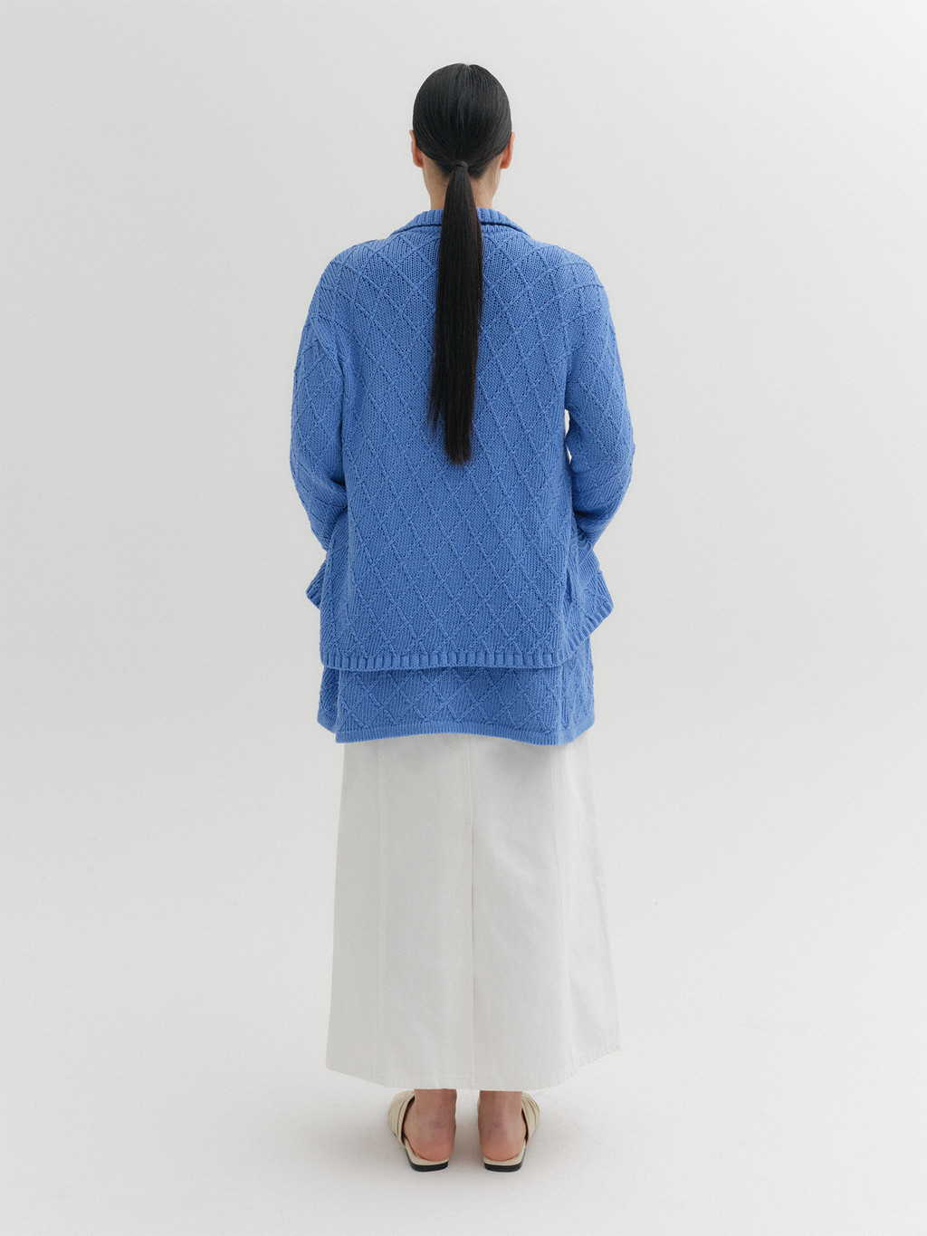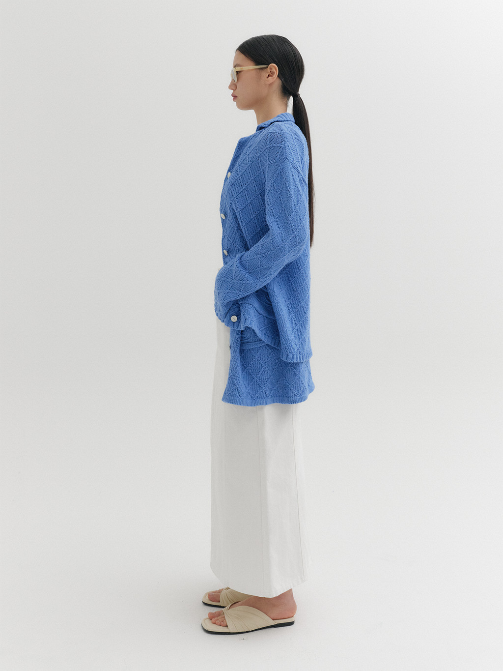 * The product worn by the model is a sample made in size S for the photoshoot. However, there may be differences in total length and specific measurements compared to the actual product. Please refer to the detailed measurements provided on the product page for accurate sizing.