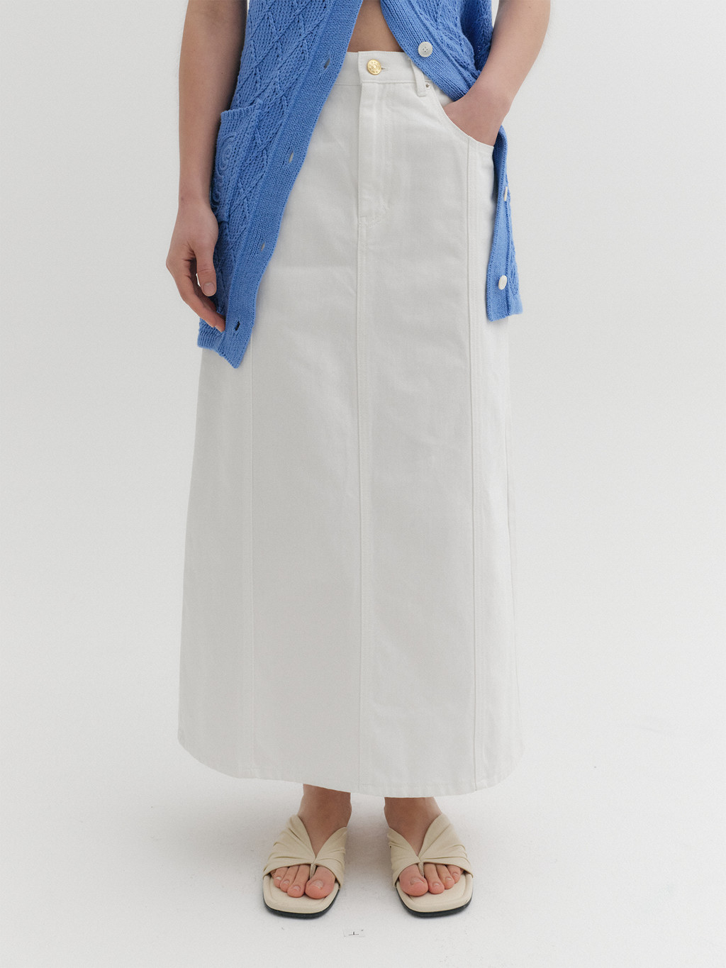 - A-line denim skirt