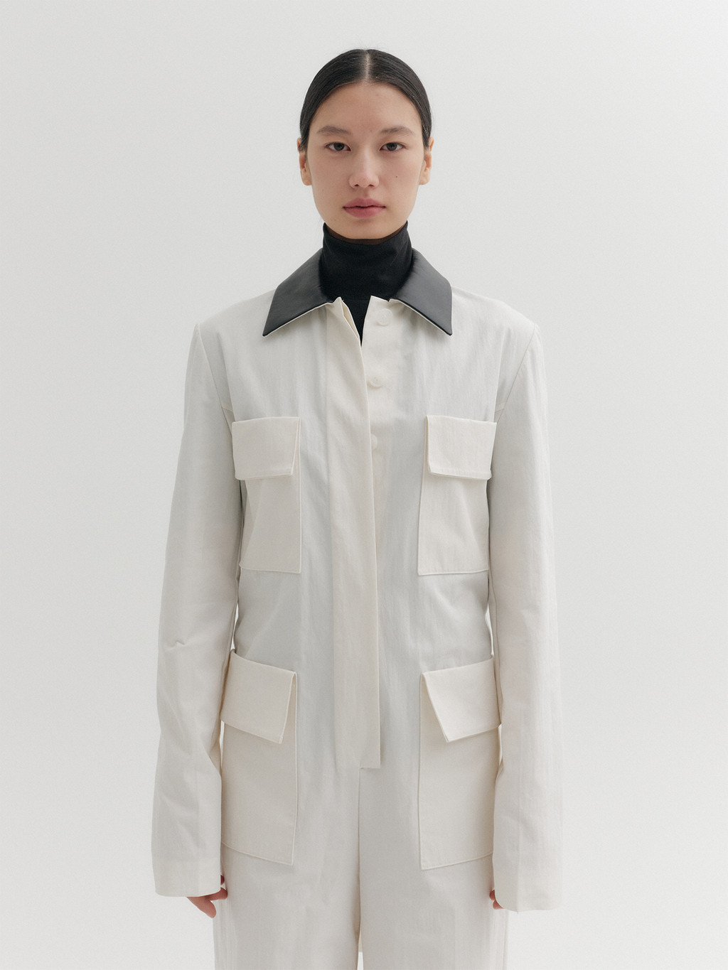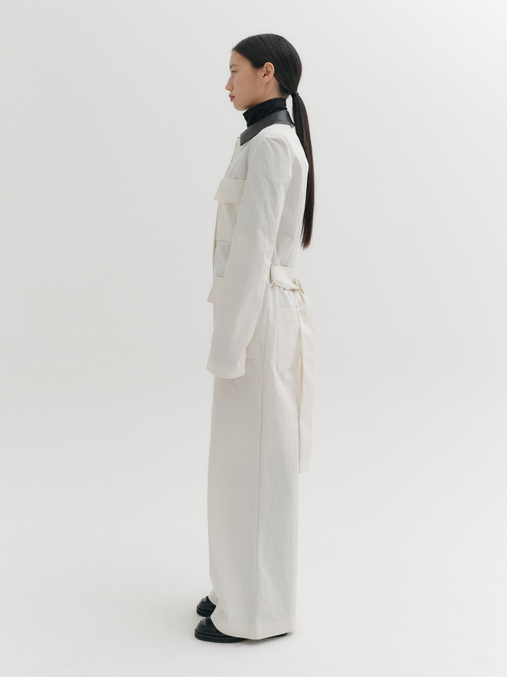 * The product worn by the model is a sample made in size S for the photoshoot. However, there may be differences in total length and specific measurements compared to the actual product. Please refer to the detailed measurements provided on the product page for accurate sizing.