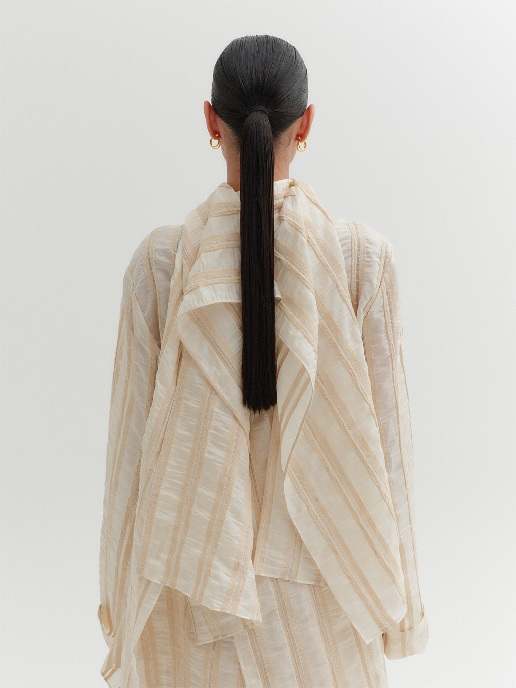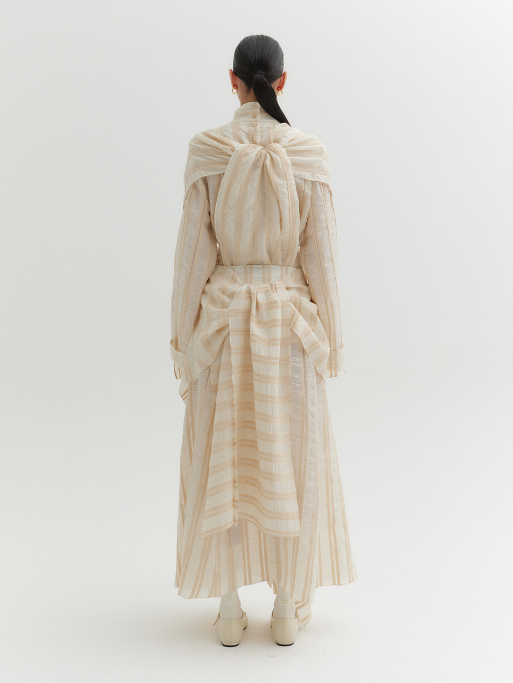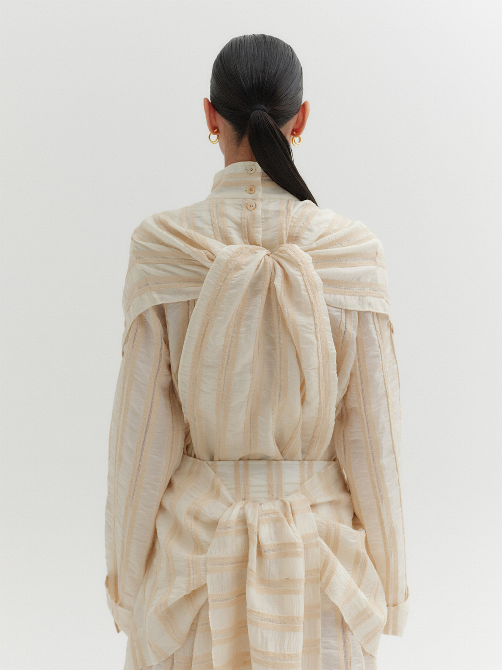 * The product worn by the model is a sample made in size S for the photoshoot. However, there may be differences in total length and specific measurements compared to the actual product. Please refer to the detailed measurements provided on the product page for accurate sizing.