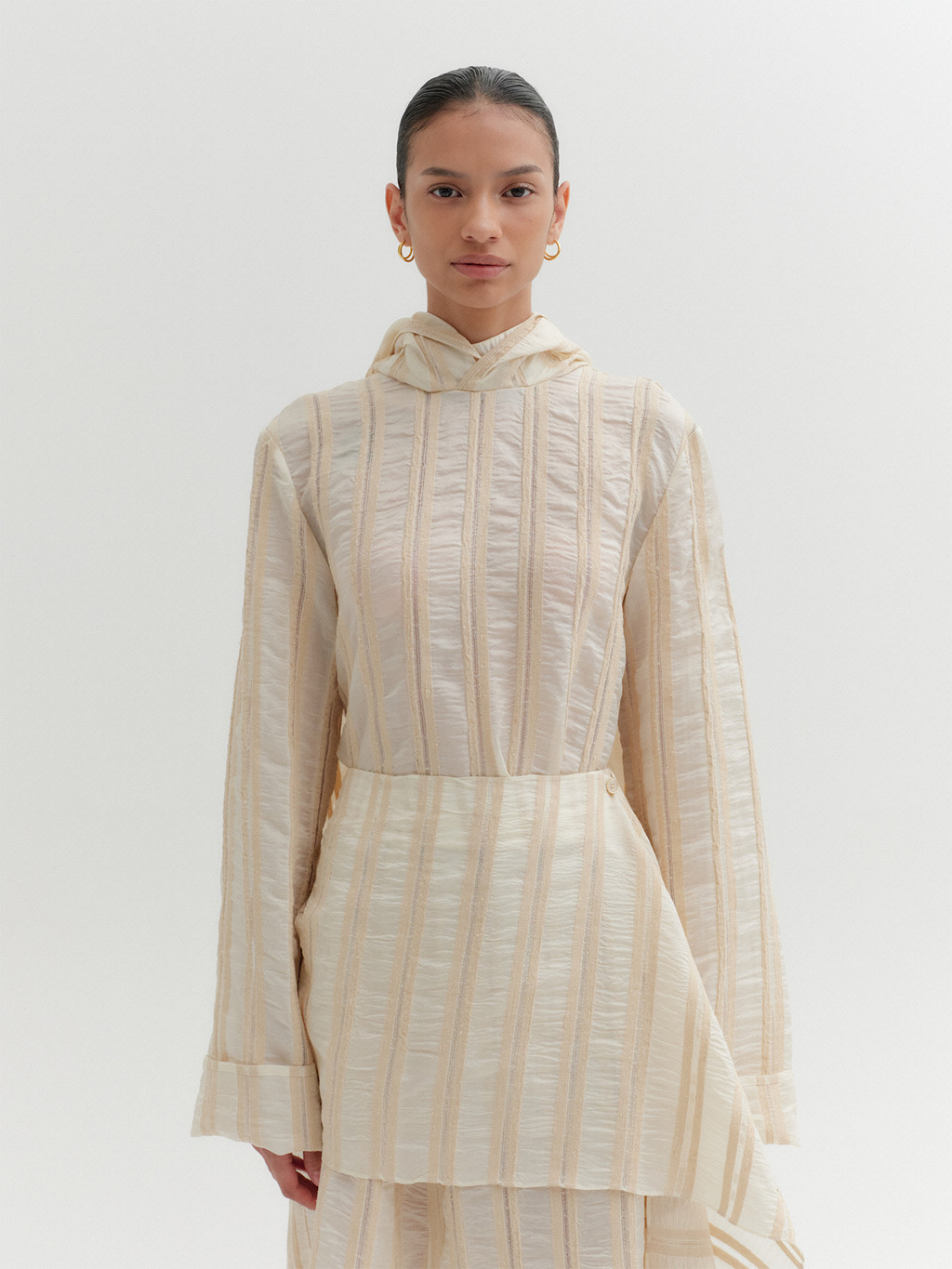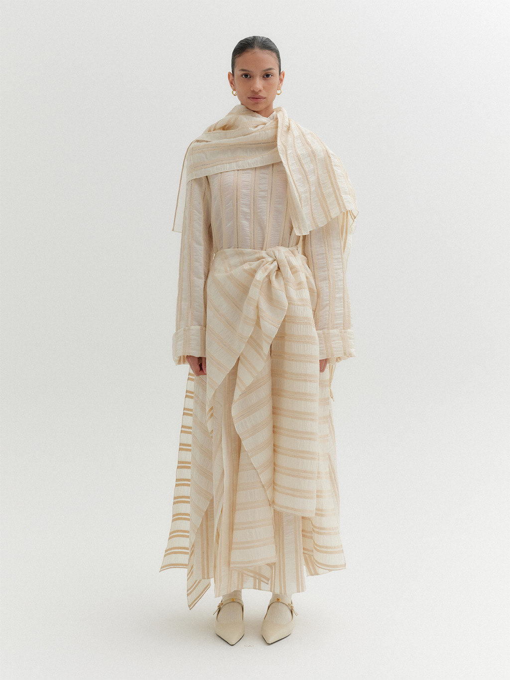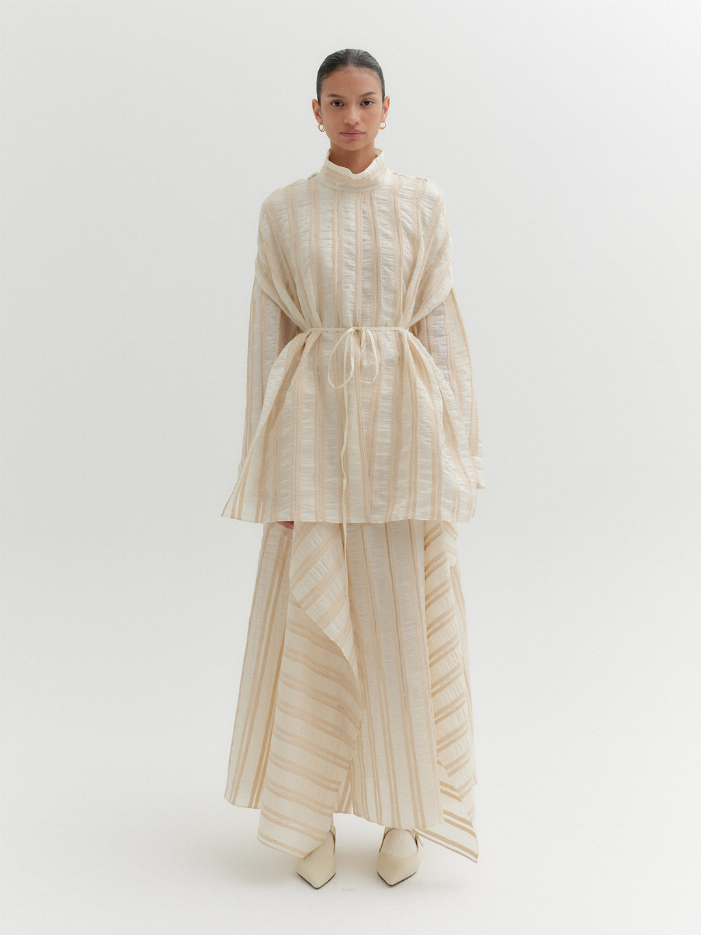 * The product worn by the model is a sample made in size S for the photoshoot. However, there may be differences in total length and specific measurements compared to the actual product. Please refer to the detailed measurements provided on the product page for accurate sizing.