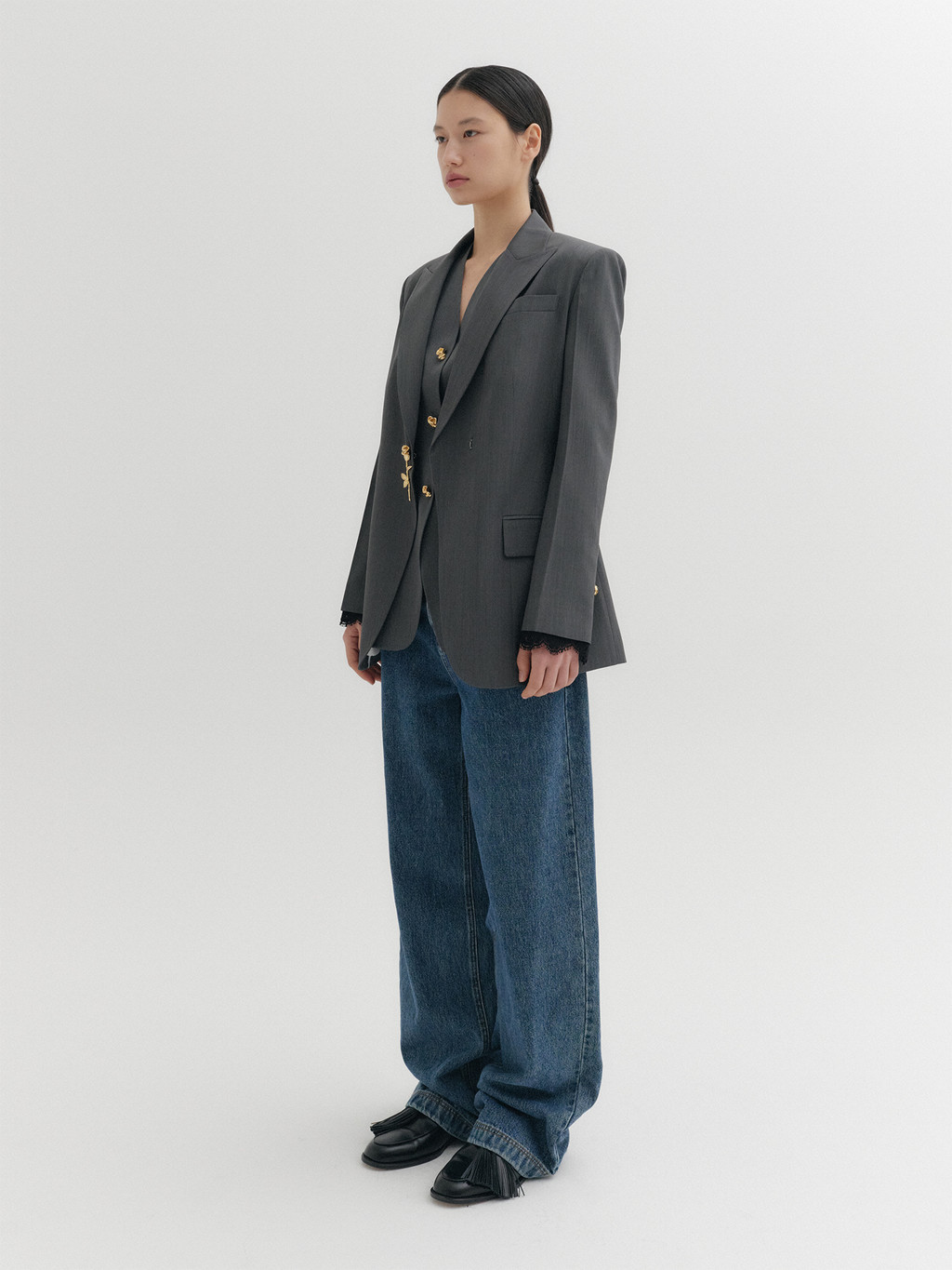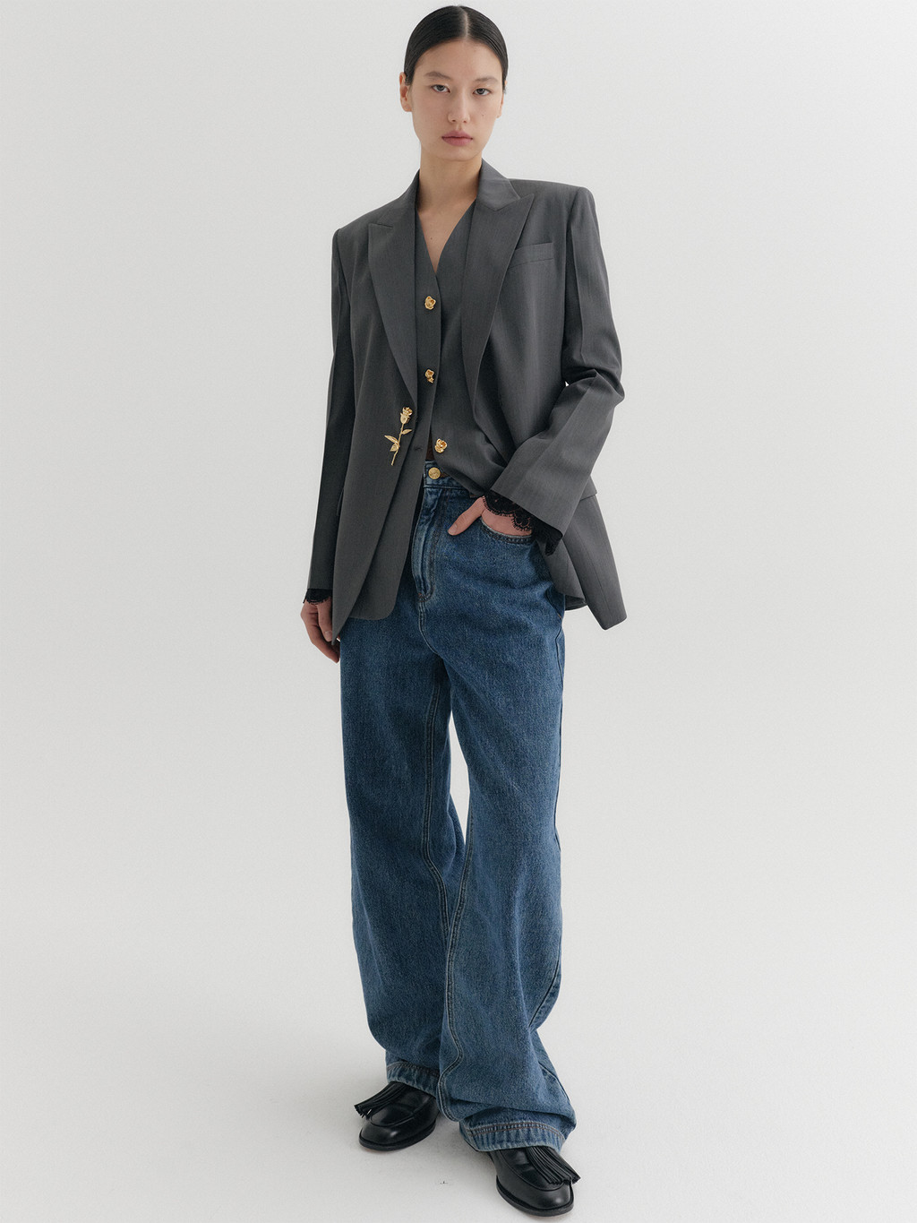 * The product worn by the model is a sample made in size S for the photoshoot. However, there may be differences in total length and specific measurements compared to the actual product. Please refer to the detailed measurements provided on the product page for accurate sizing.