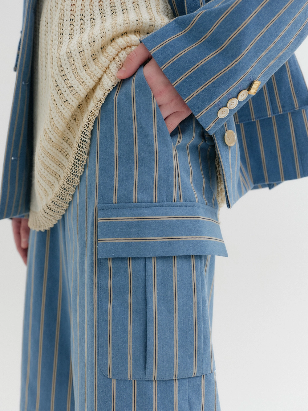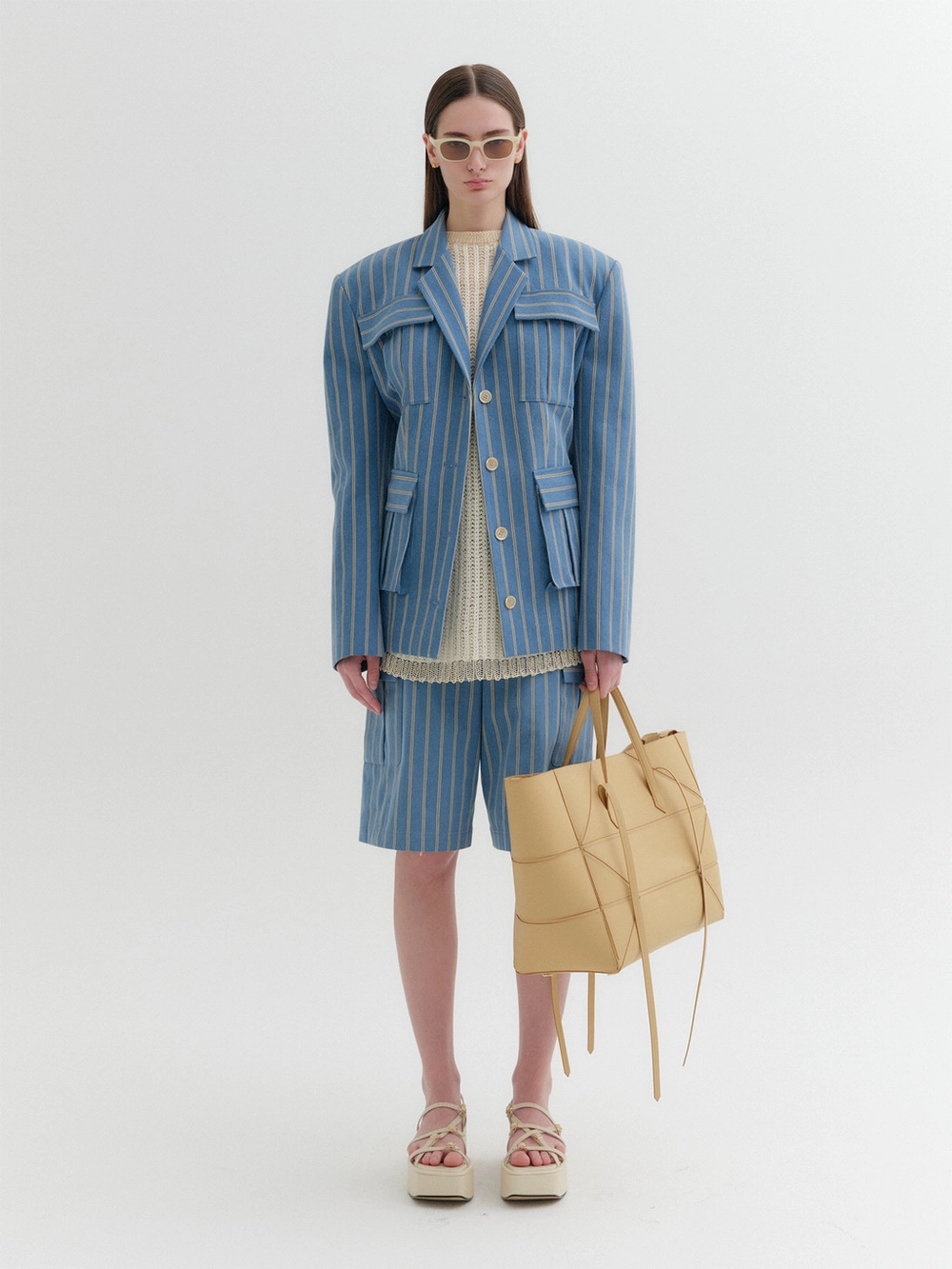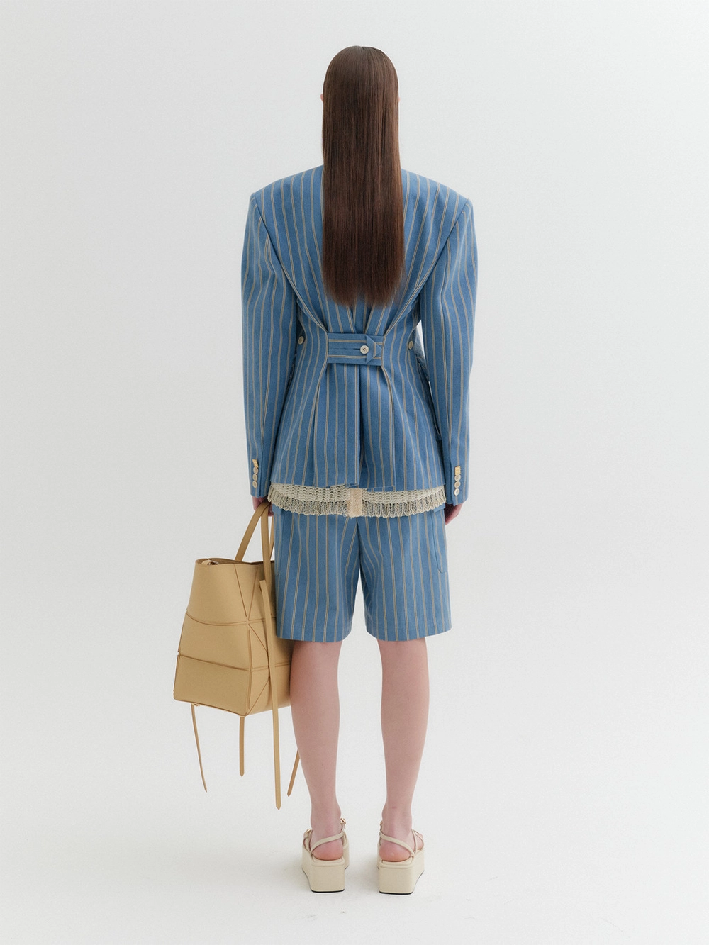 * The product worn by the model is a sample made in size S for the photoshoot. However, there may be differences in total length and specific measurements compared to the actual product. Please refer to the detailed measurements provided on the product page for accurate sizing.