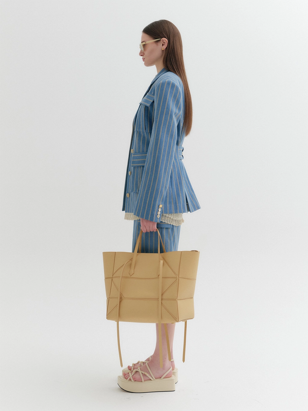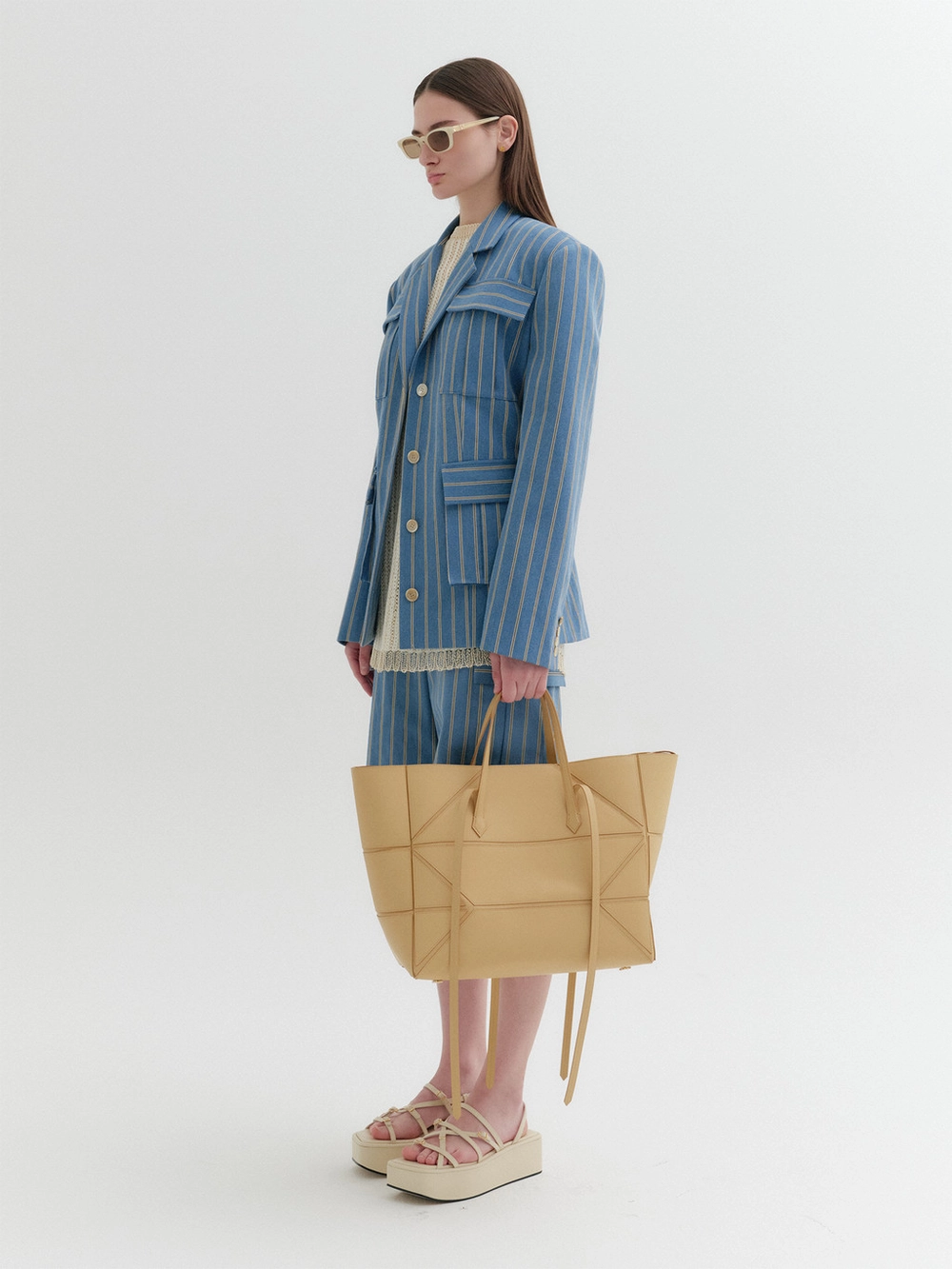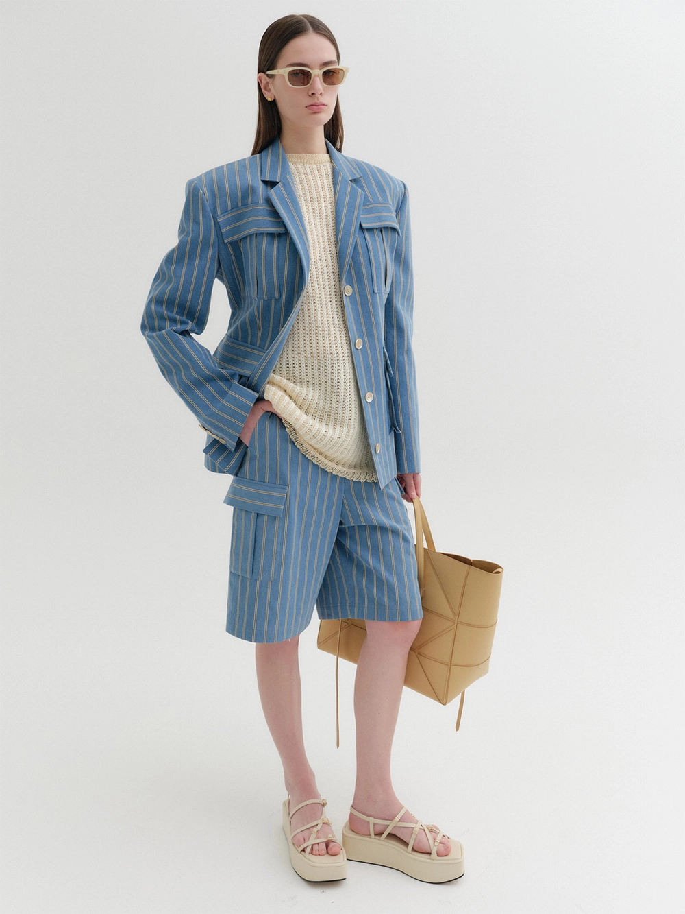 * The product worn by the model is a sample made in size S for the photoshoot. However, there may be differences in total length and specific measurements compared to the actual product. Please refer to the detailed measurements provided on the product page for accurate sizing.