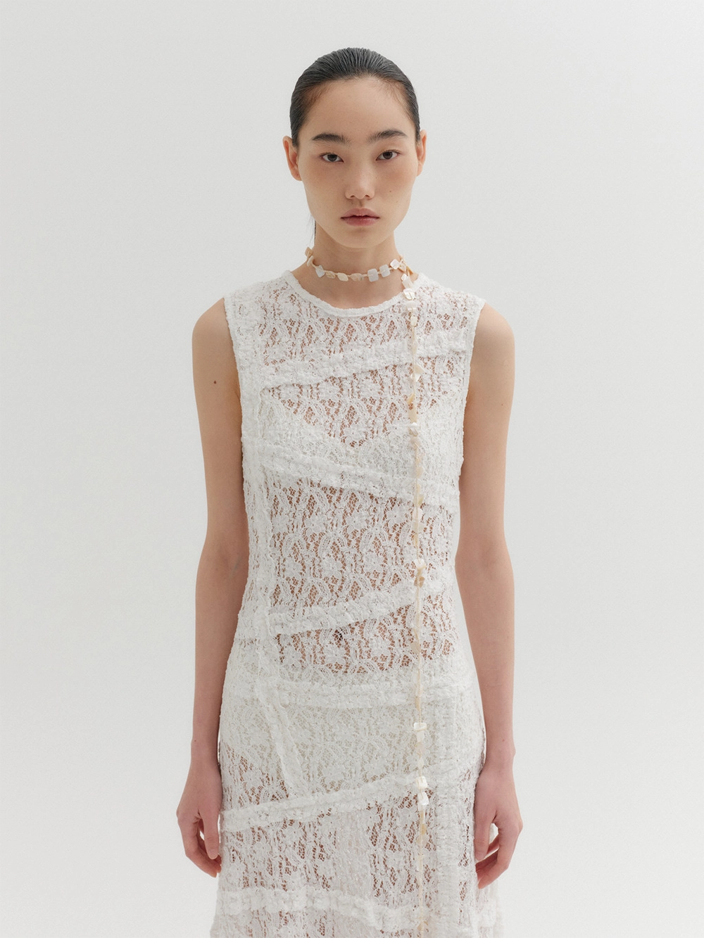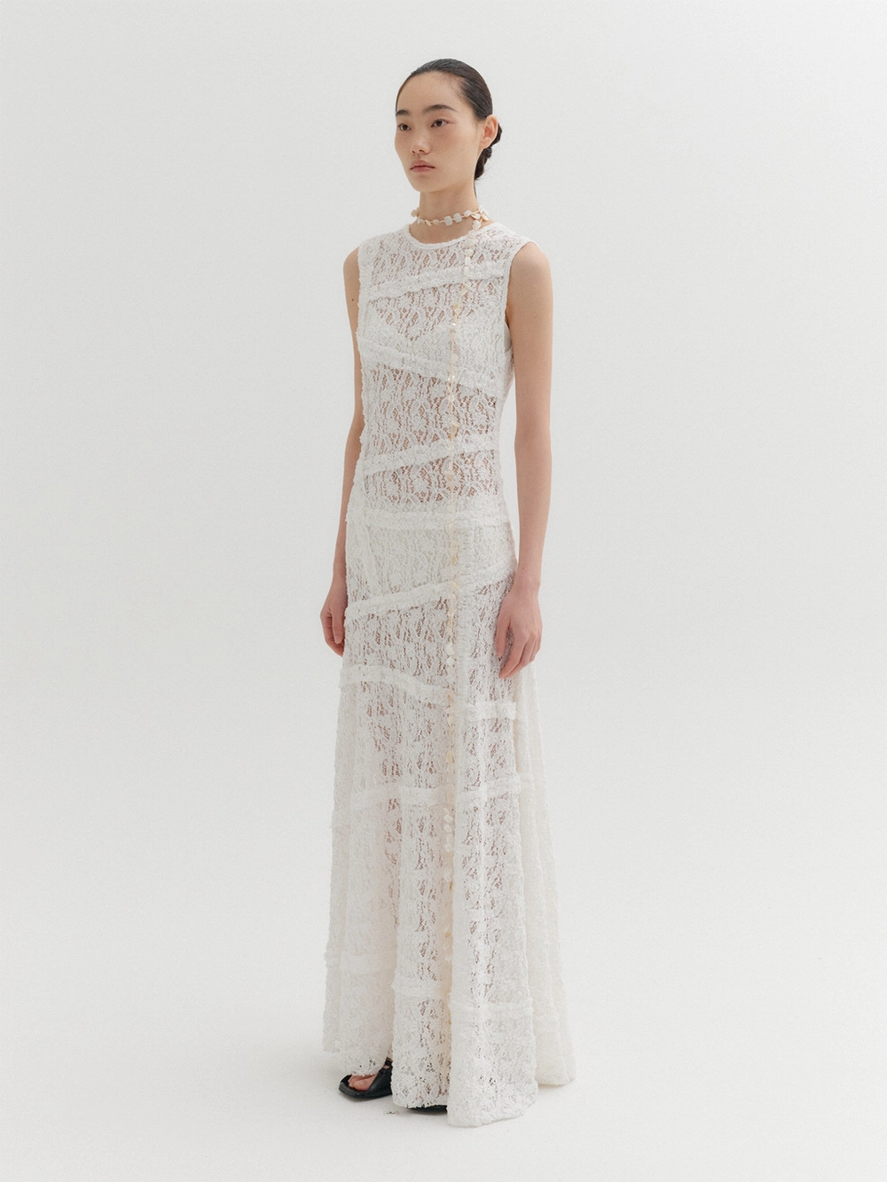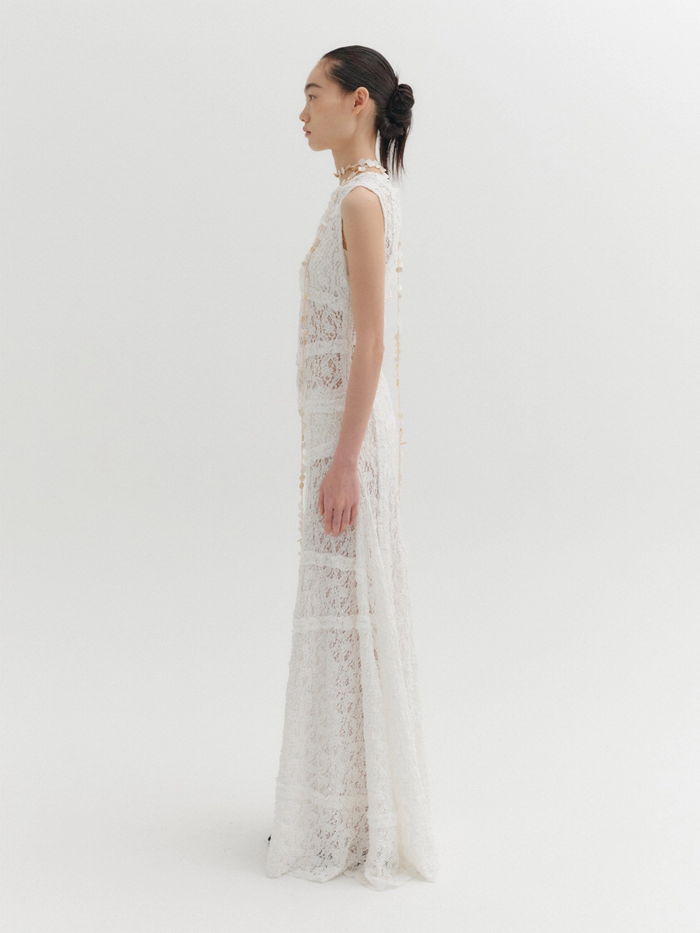 * The product worn by the model is a sample made in size S for the photoshoot. However, there may be differences in total length and specific measurements compared to the actual product. Please refer to the detailed measurements provided on the product page for accurate sizing.