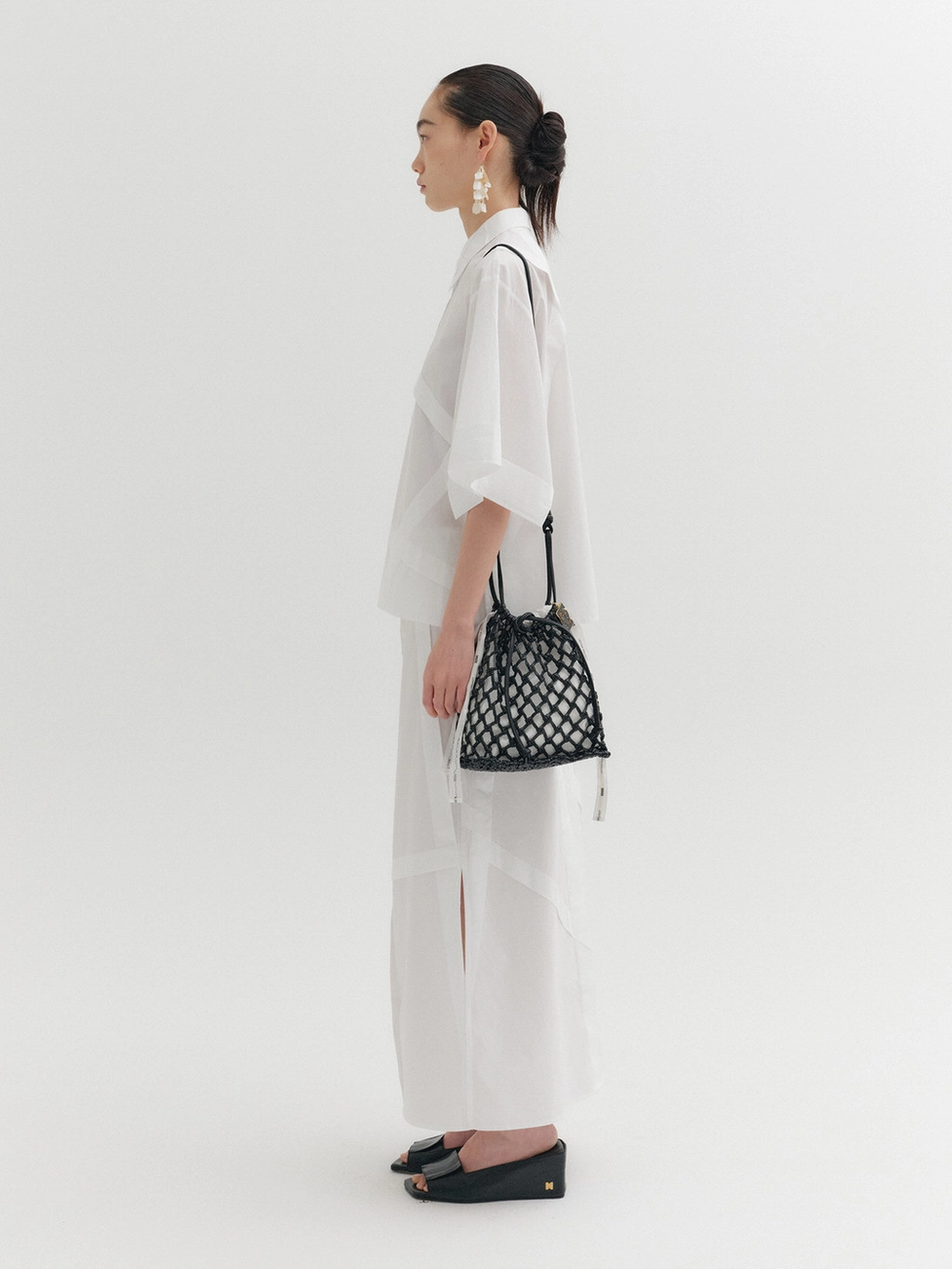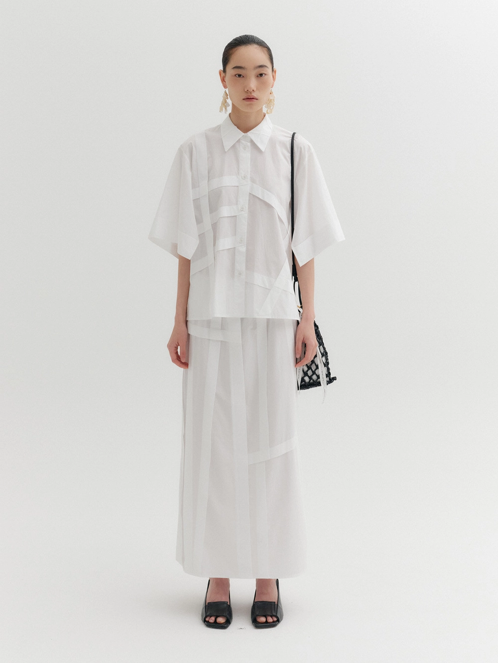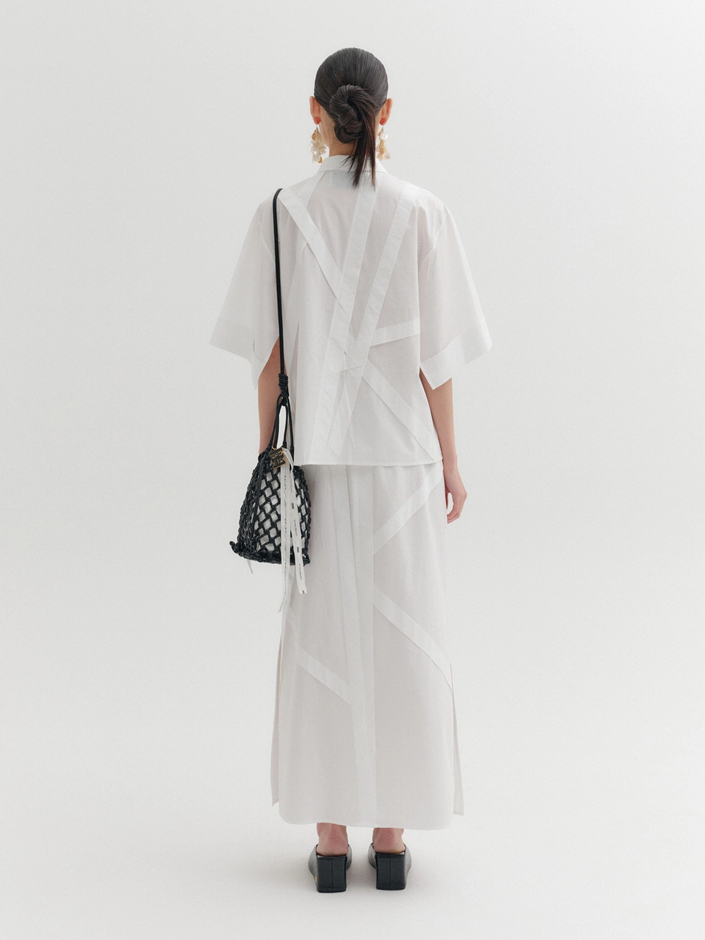 * The product worn by the model is a sample made in size S for the photoshoot. However, there may be differences in total length and specific measurements compared to the actual product. Please refer to the detailed measurements provided on the product page for accurate sizing.