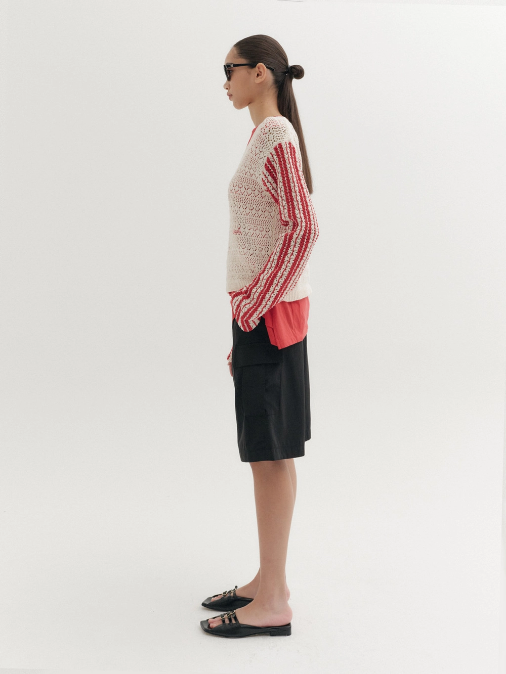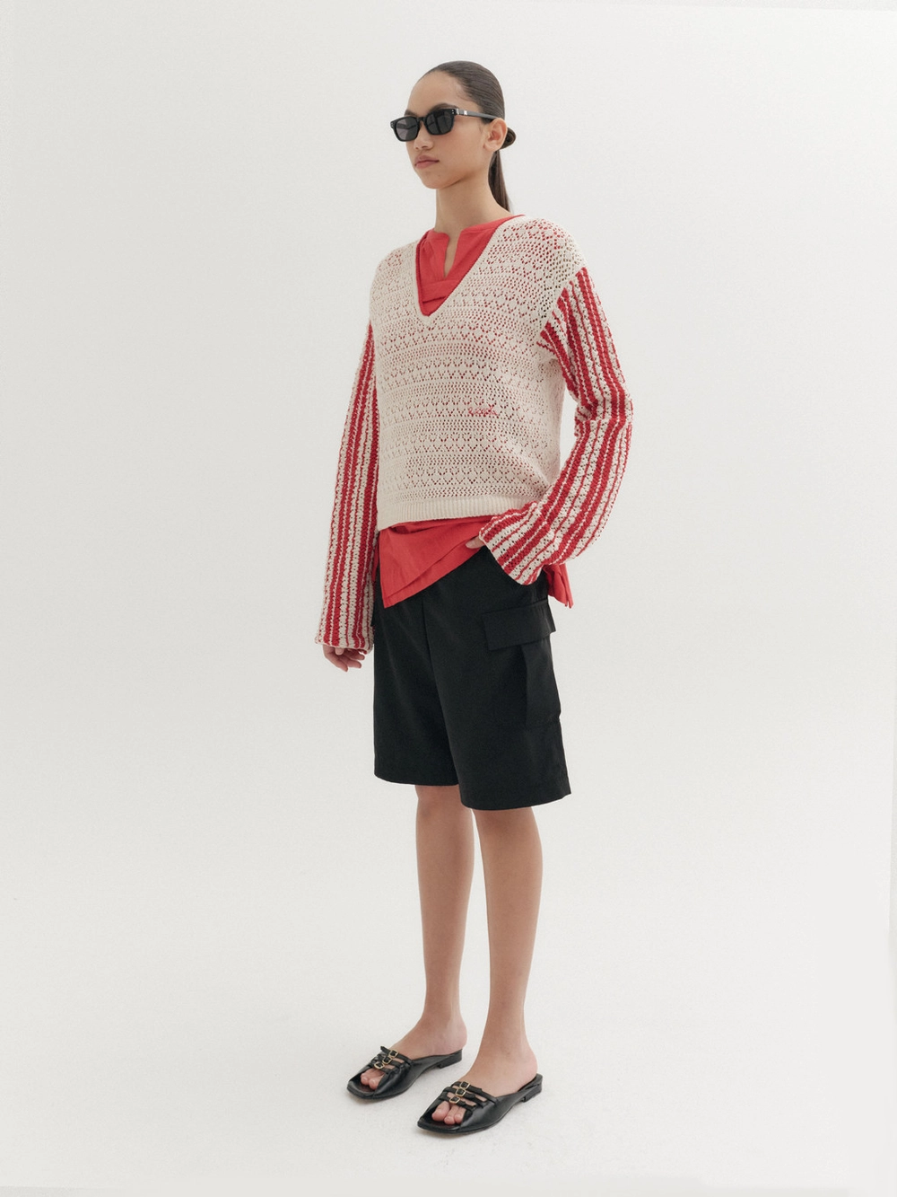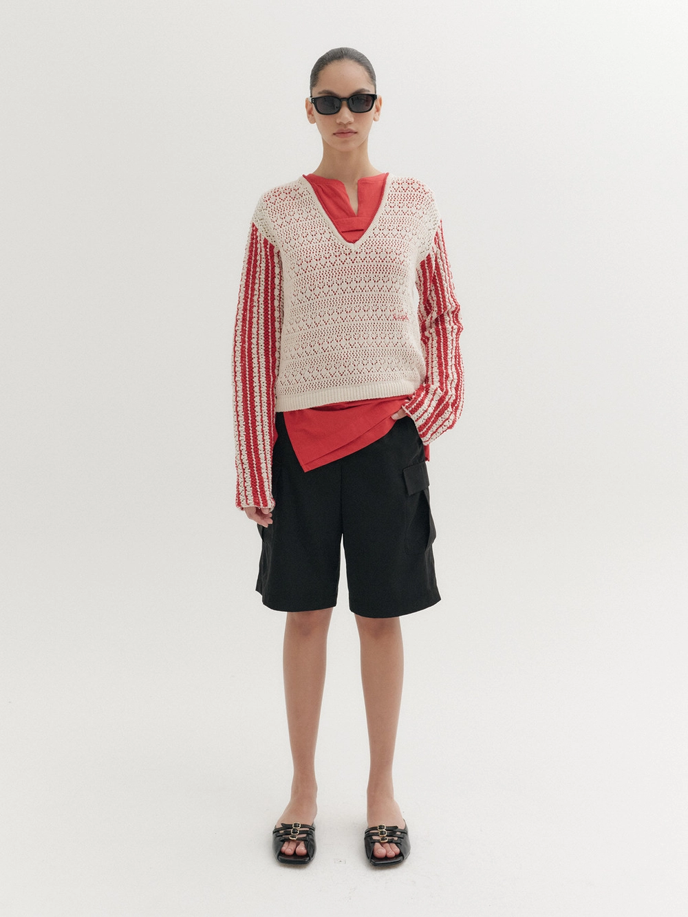 * The product worn by the model is a sample made in size S for the photoshoot. However, there may be differences in total length and specific measurements compared to the actual product. Please refer to the detailed measurements provided on the product page for accurate sizing.