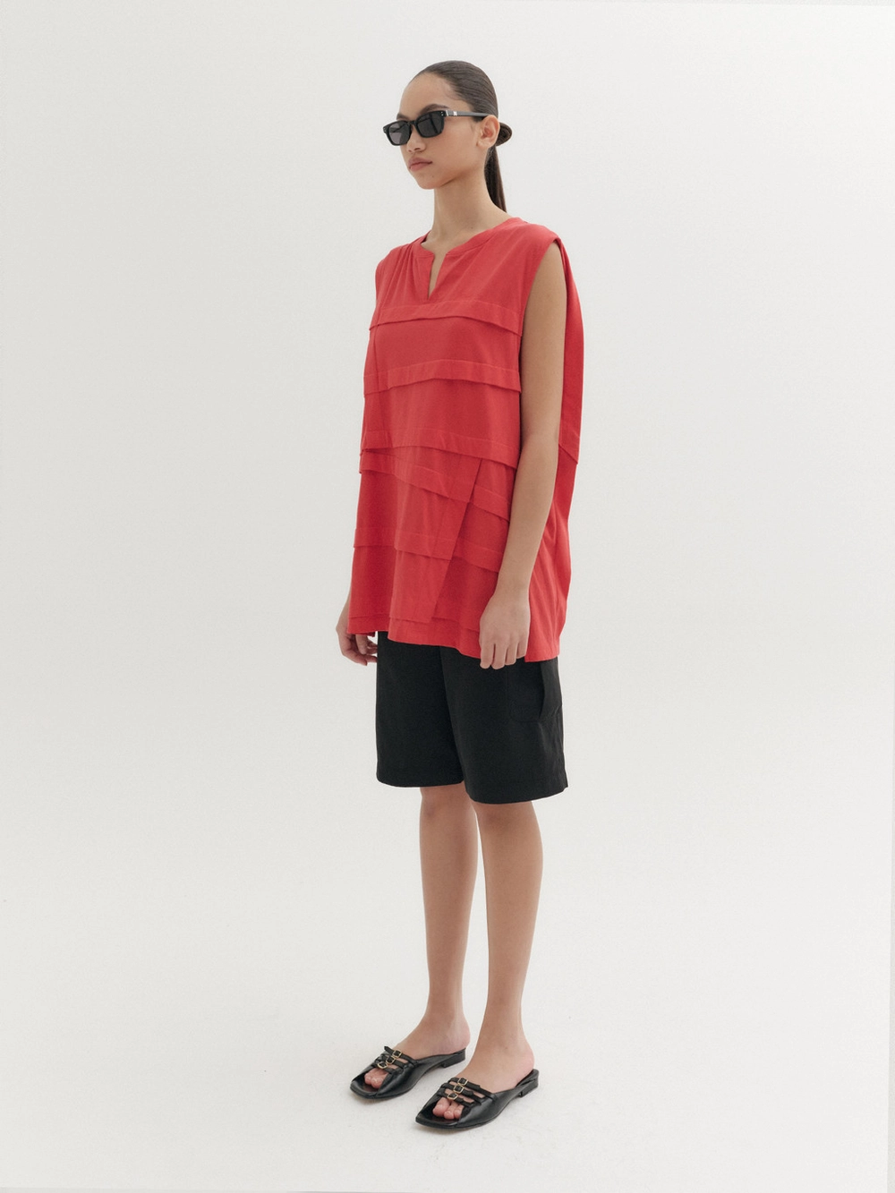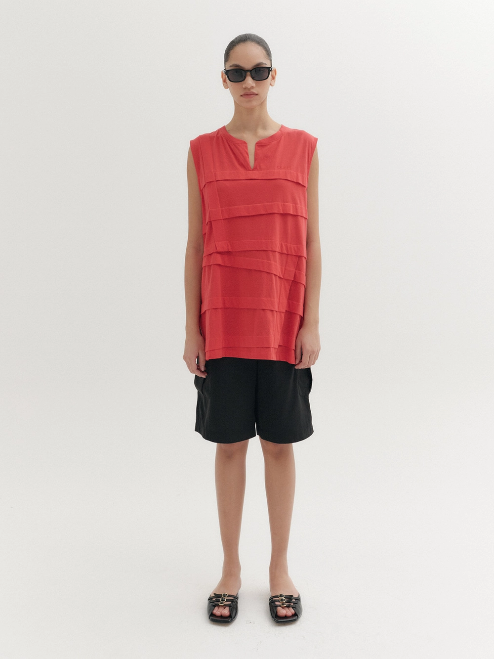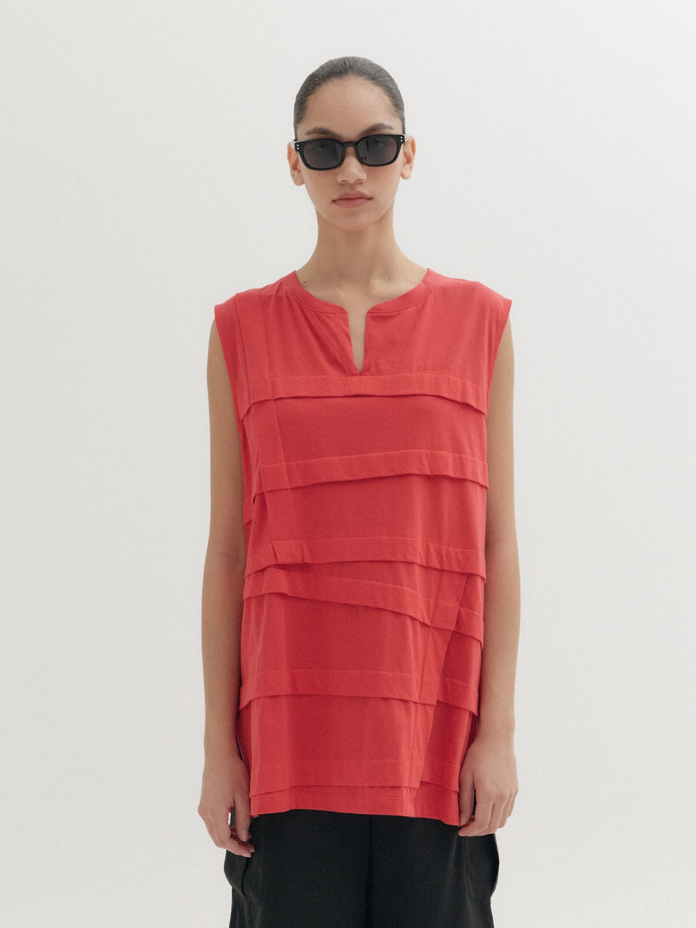 - Sleeveless top with a slit neckline
