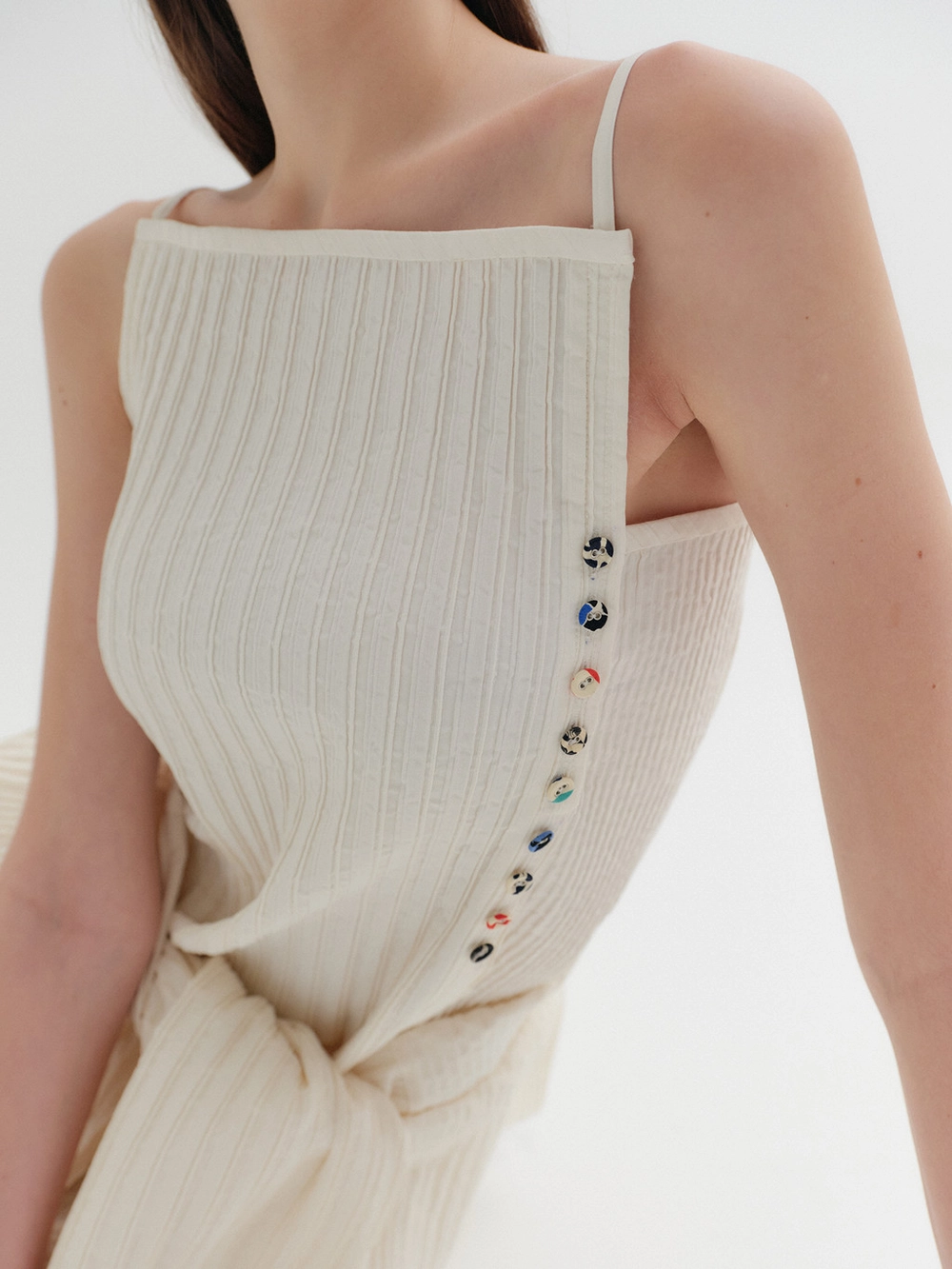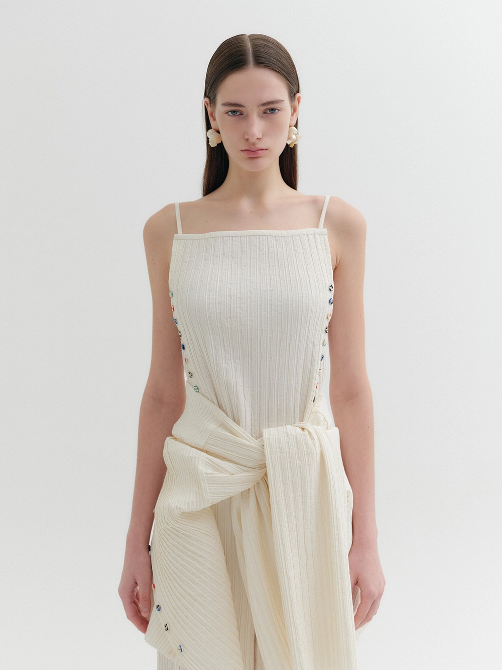 * The product worn by the model is a sample made in size S for the photoshoot. However, there may be differences in total length and specific measurements compared to the actual product. Please refer to the detailed measurements provided on the product page for accurate sizing.