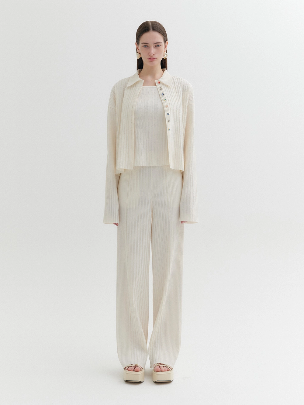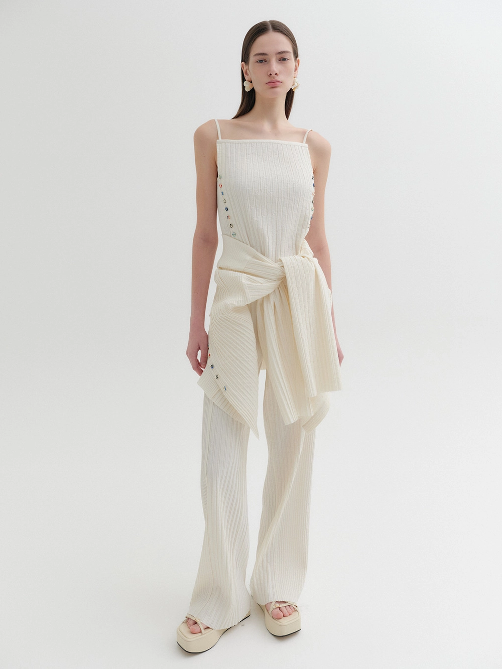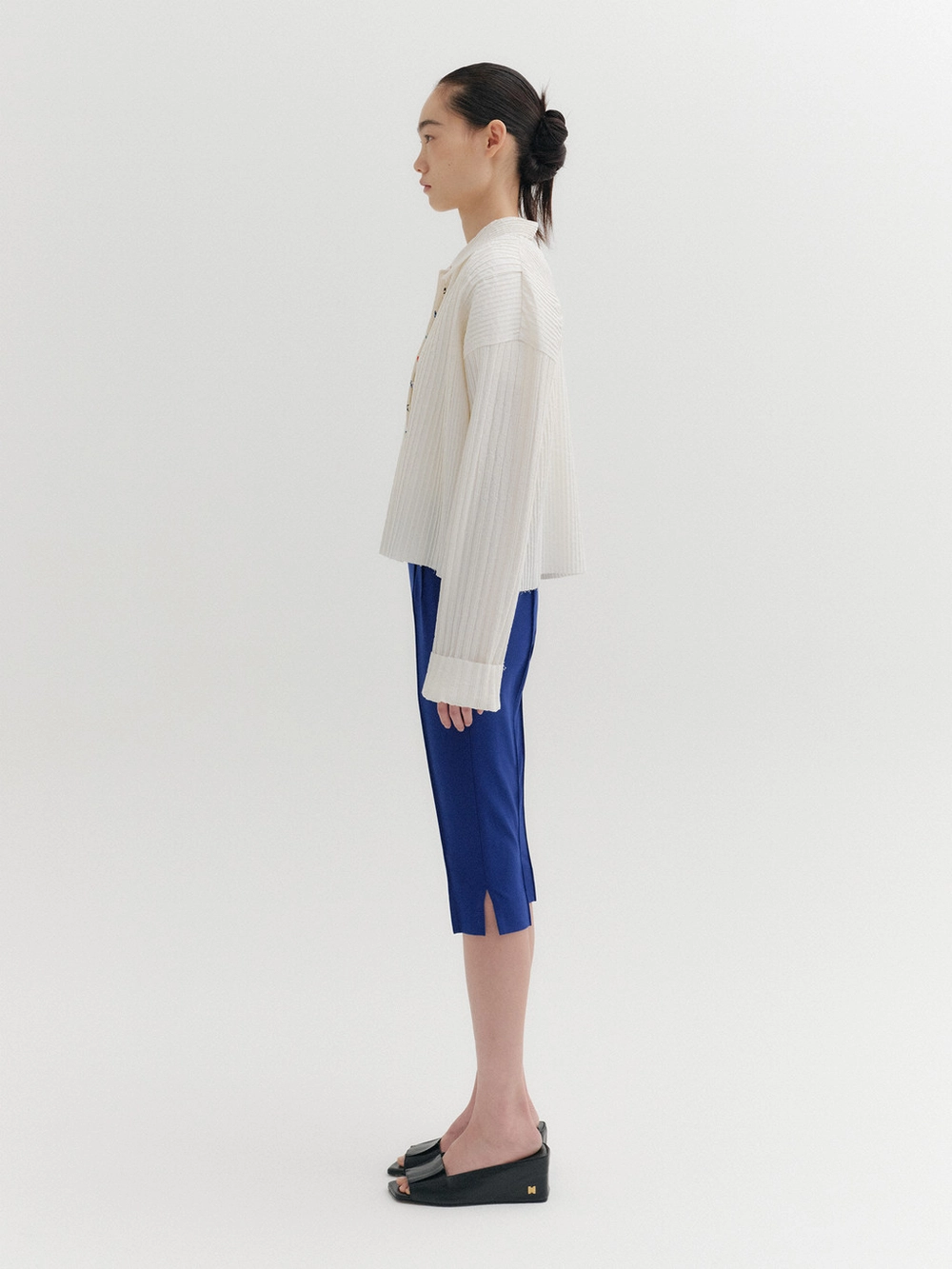 * The product worn by the model is a sample made in size S for the photoshoot. However, there may be differences in total length and specific measurements compared to the actual product. Please refer to the detailed measurements provided on the product page for accurate sizing.