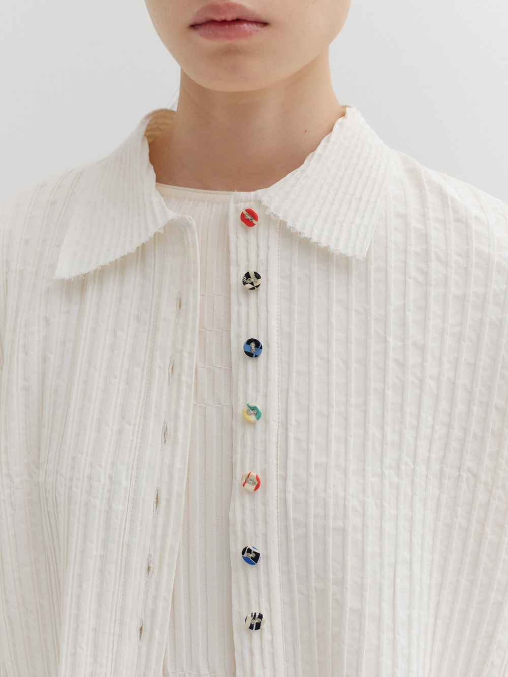 Pleated Button-up Shirt - IvoryNEW